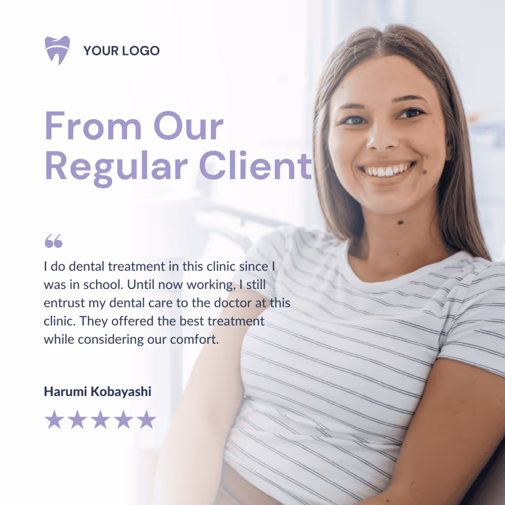 Finding out other people’s reviews about the services offered by a clinic is one of the first steps for many people before deciding to visit the place. What is more convincing than testimonials from the patients? It is a good content idea you can post on your dentist’s Instagram account. Most will believe in online recommendations and reviews just like trusting their friends and family’s opinion. Pick positive reviews that highlight your strengths and qualities using the proper template.