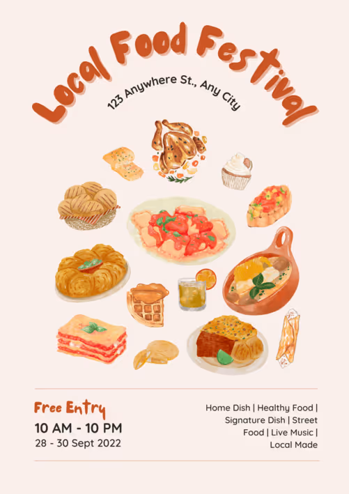Inviting people to join the events will be easier by using illustrative posters or flyer designs. This style can provide an interesting perspective and an overview of the event. The illustration will deliver a more effective impact on the audience at events such as festivals. Even so, it doesn’t mean other events won’t be suitable for using this style. Corporate events, like webinars, seminars, or training can apply this illustrative style, too.