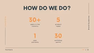 Although this template is designed for brand guidelines, you can apply it to your marketing kit or brand rules presentation. The overall design plays with large headings and small body text. Even so, it will accommodate all the text you should include. The template is not only functional but also attractive as a presentation display.