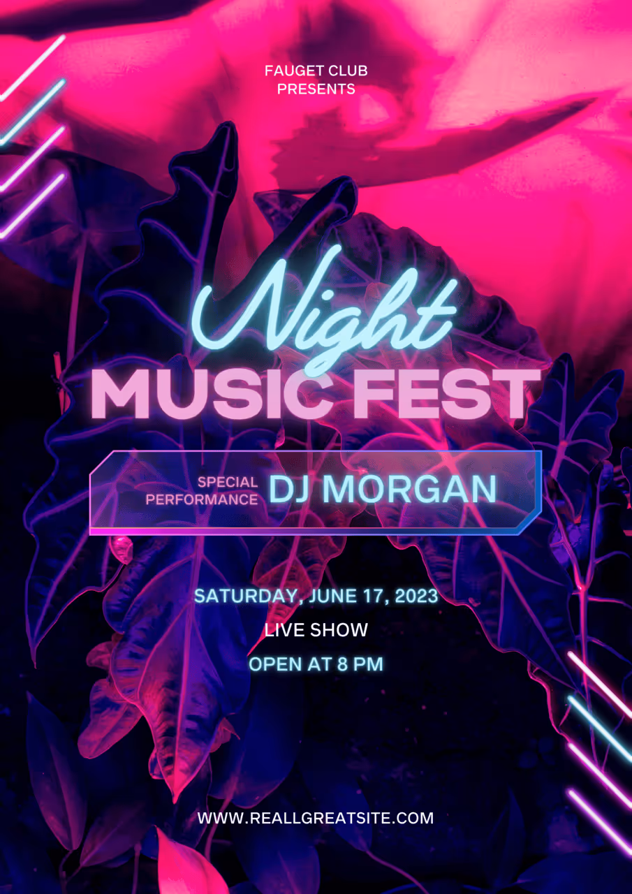 Besides the use of bold and vibrant colors, neon design is also known for its high contrast and composition. To make your design, even more, stand out, don’t hesitate to create a contrast within your design. Thus, use a dark background like black or navy blue, and place neon elements against the background to make them pop. Aside, you need to pay attention to the vocal point of your design which you want your audience to pay attention to. Place the most important element in the center and give a touch of neon accent there.