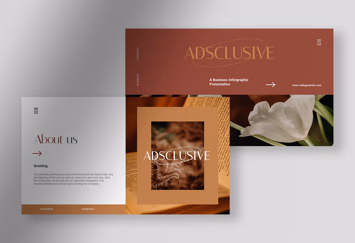 Adsclusive, a terracotta brick business infographic presentation template, provides you with 10 unique template designs, available in PPT and PPTX format files. You can edit the text, image and color on the template using Microsoft PowerPoint or any other compatible application on your device to be more like your preferences or needs. Help documentation in a PDF file is included in the package to assist you in editing the template. But, if you find any difficulties or issues that Help cannot cover, or you have any questions and inquiries regarding this product, you are always welcome to contact our support team at any time of your convenience.