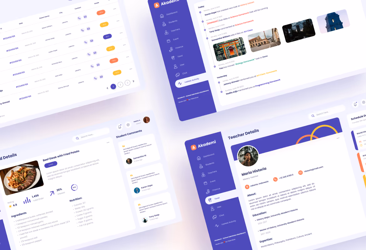 By using Akademi, you can add as many students, teachers, school officers as you want. You even can put your school events or canteen menu on the dashboard for your teachers and students. The sophisticated design offered by this template, the friendly user interface and the choice of purple as its main color will make your school website look stunning and amazing like no other.