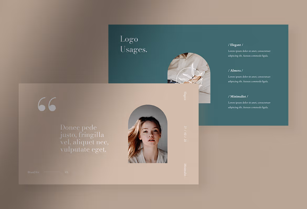 Introducing to you, Almera, the elegant minimalist brand kit presentation that will help enhance brand visual for the sales team or marketing team by using it as digital brand guidelines, brand proposal or for brand presentation. Whether you are a business owner, blogger, influencer, or photographer, this presentation template is a perfect choice.