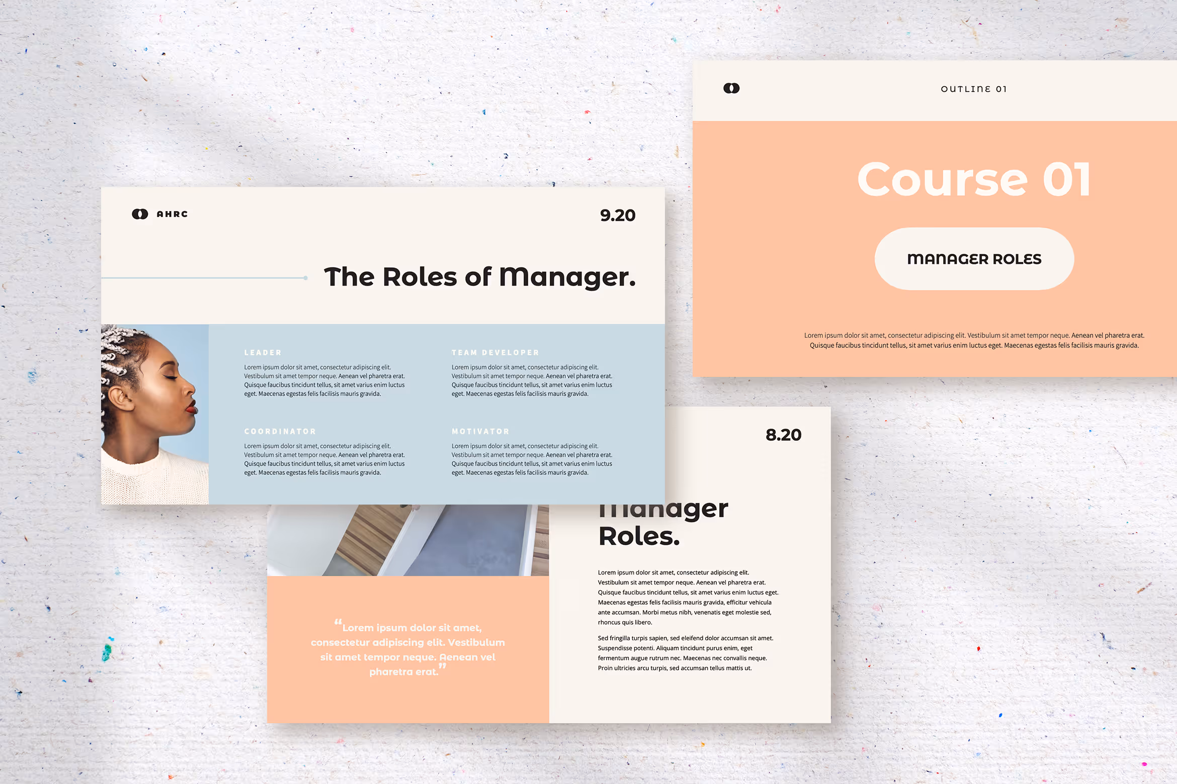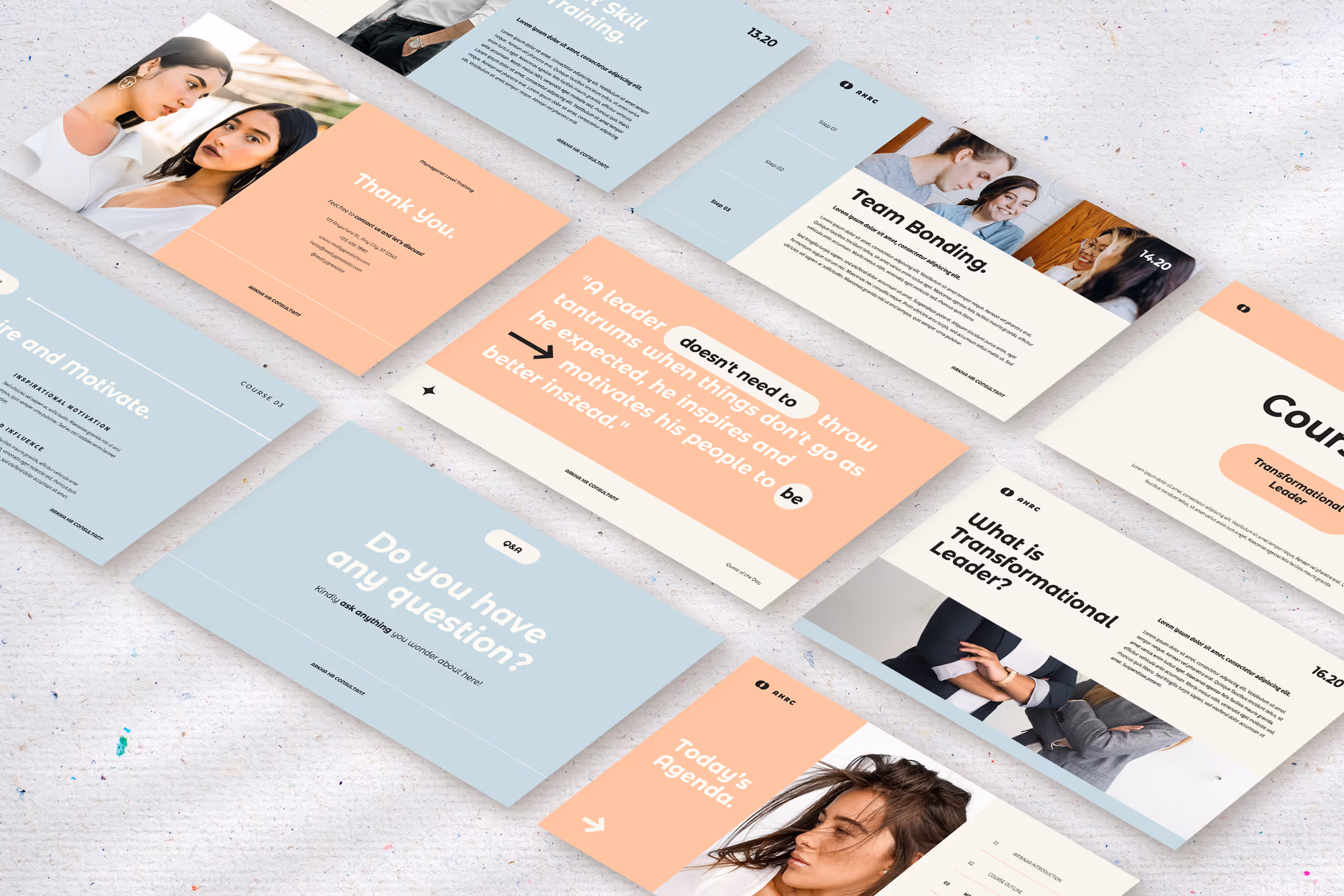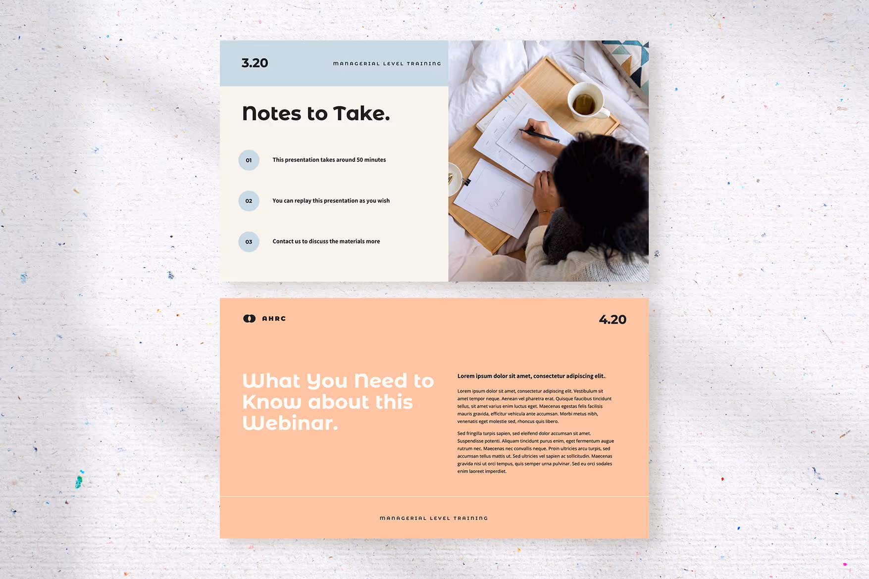 The combination of salmon and blue color reminds anyone who sees it of a coastal atmosphere filled with conch shells. Its well-organized layout will help you to create a neat look. This presentation template provides you with slides for the webinar introduction, speaker introduction, and the main part of the webinar, the material slides. Its minimalist design will help the audience focus more on the content, not the illustration or other elements that decorate the slides. This template is perfect for any webinar, like business, management, leadership, and so on.