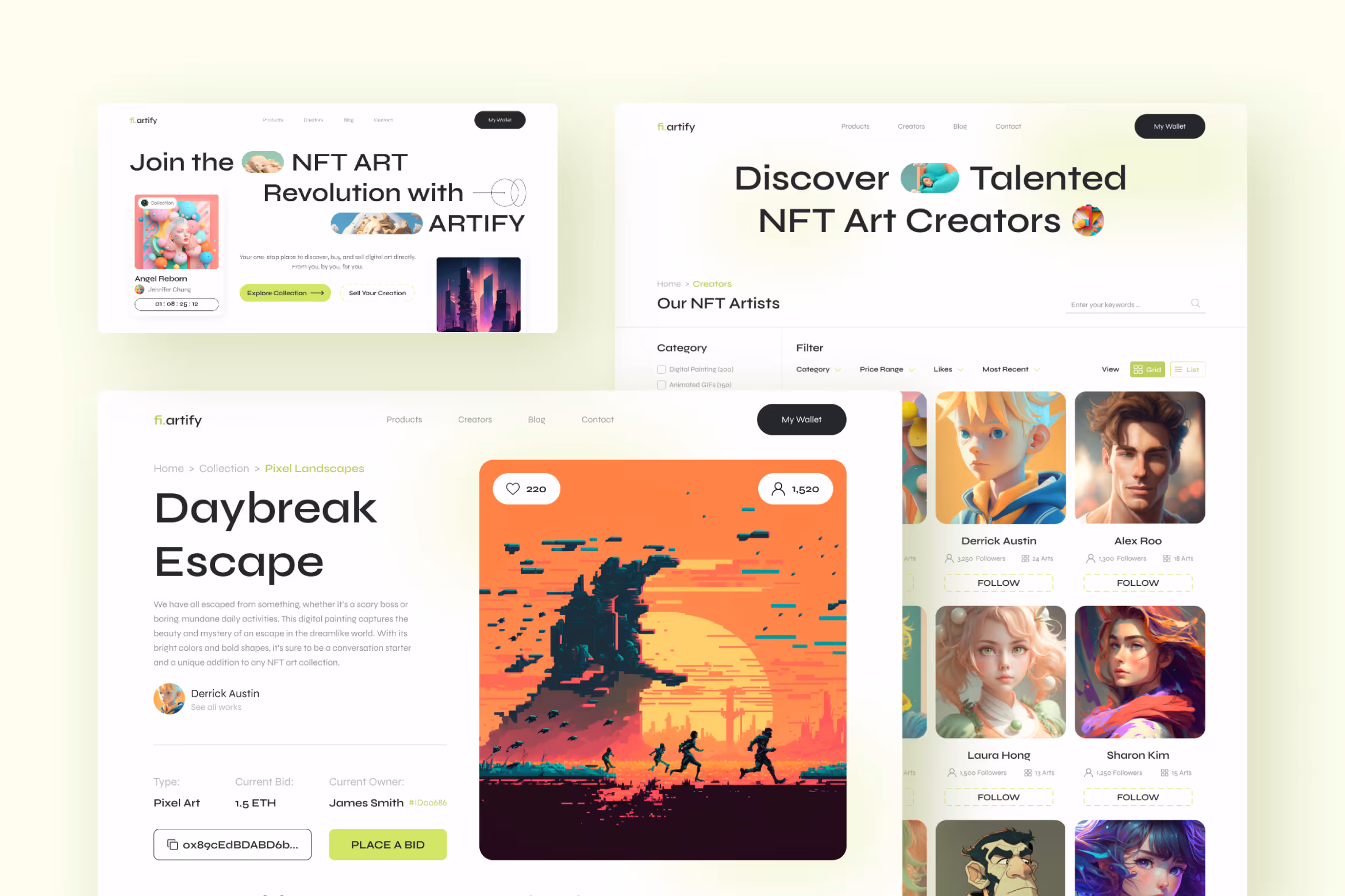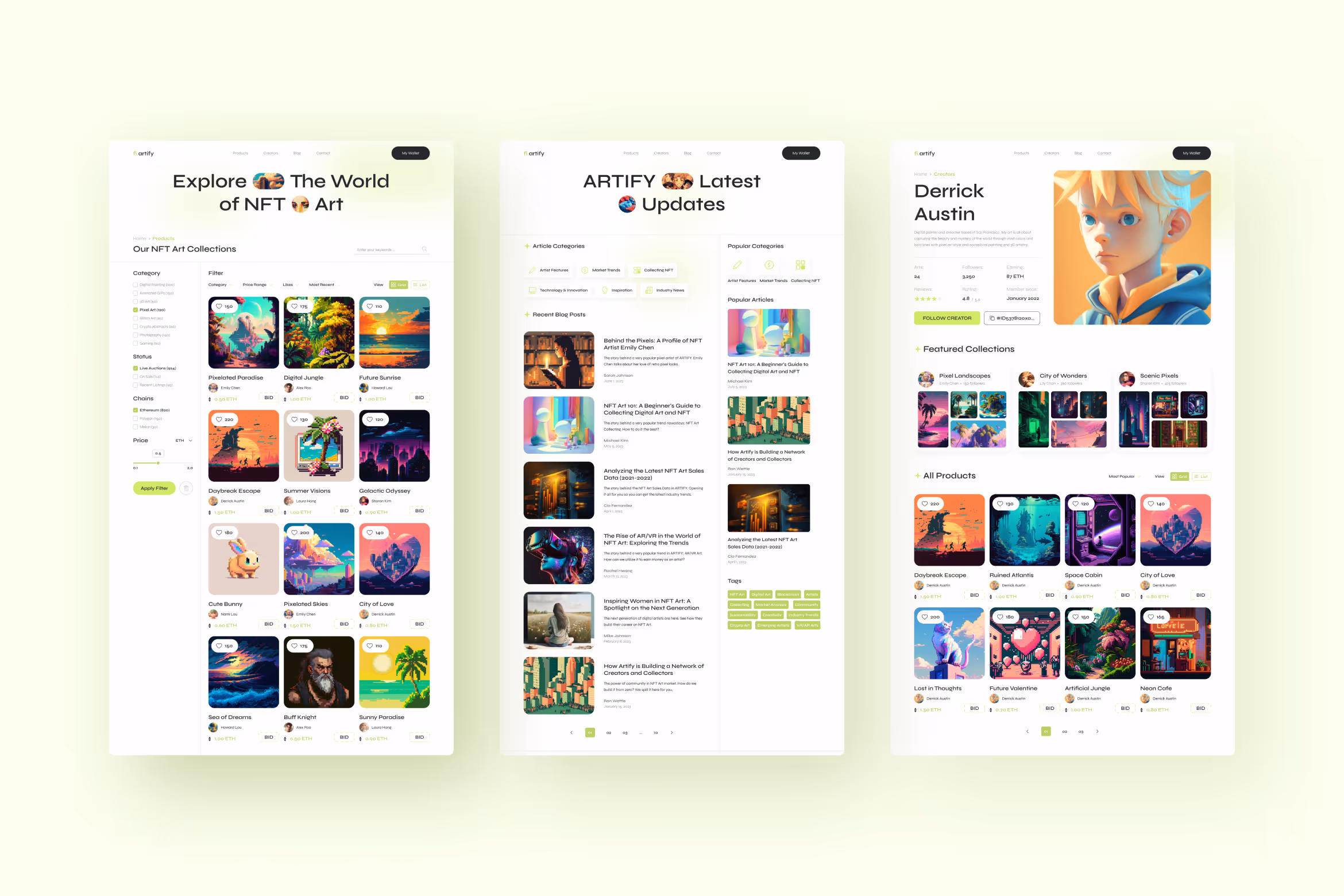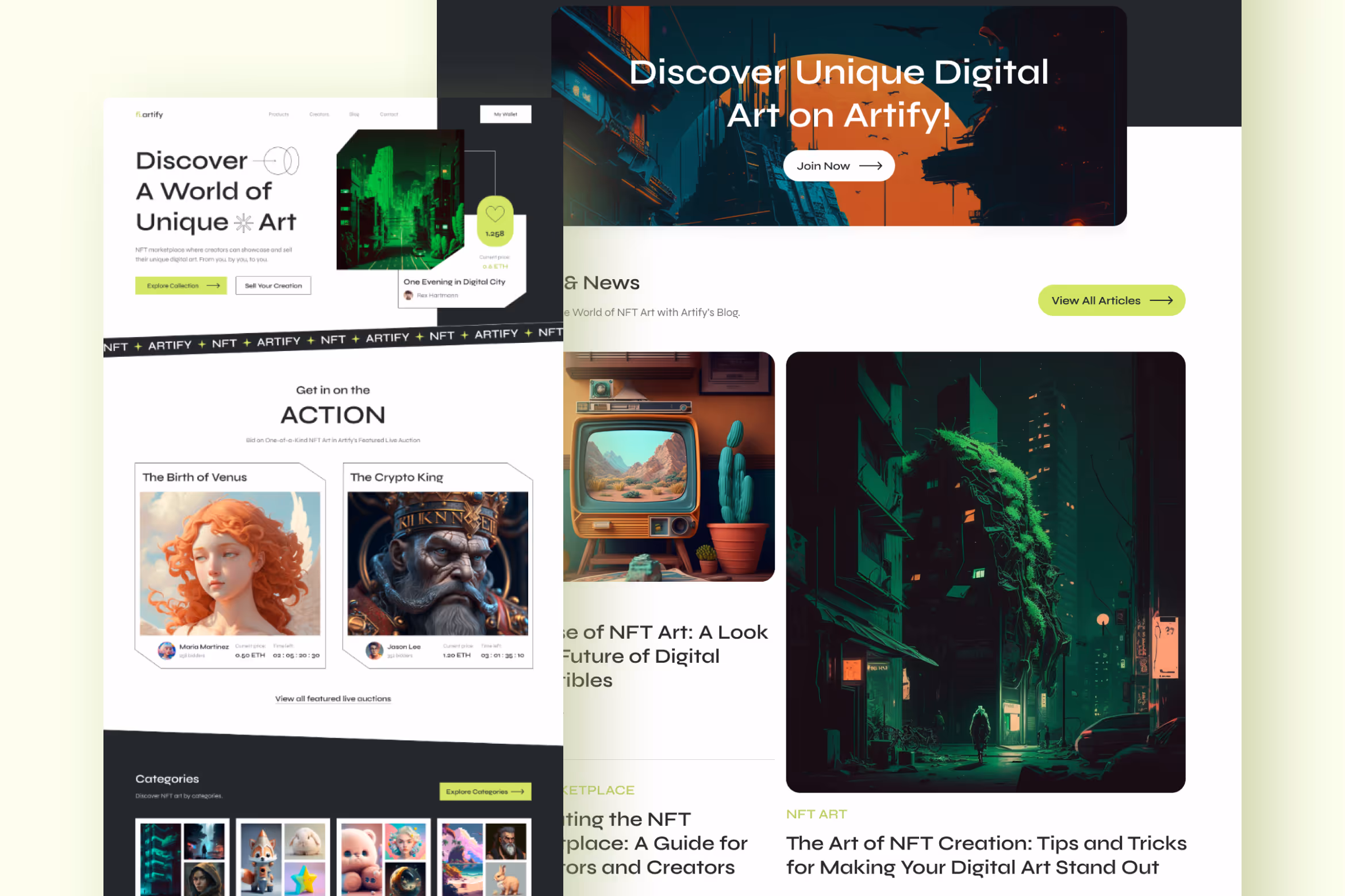 The demand for NFT arts is still high to this day. It creates opportunities for digital artists to introduce, market, and sell their products to larger customers. Digital art enthusiasts also have more chances to get works from various artists with various styles. To provide the best place for artists and collectors, you can make your NFT marketplace to be one. The first step to inviting them to come to the marketplace web is using the proper website template. Have a bright appearance that invites the audience to visit your website using Artify, the Bright, Clean NFT Marketplace template.