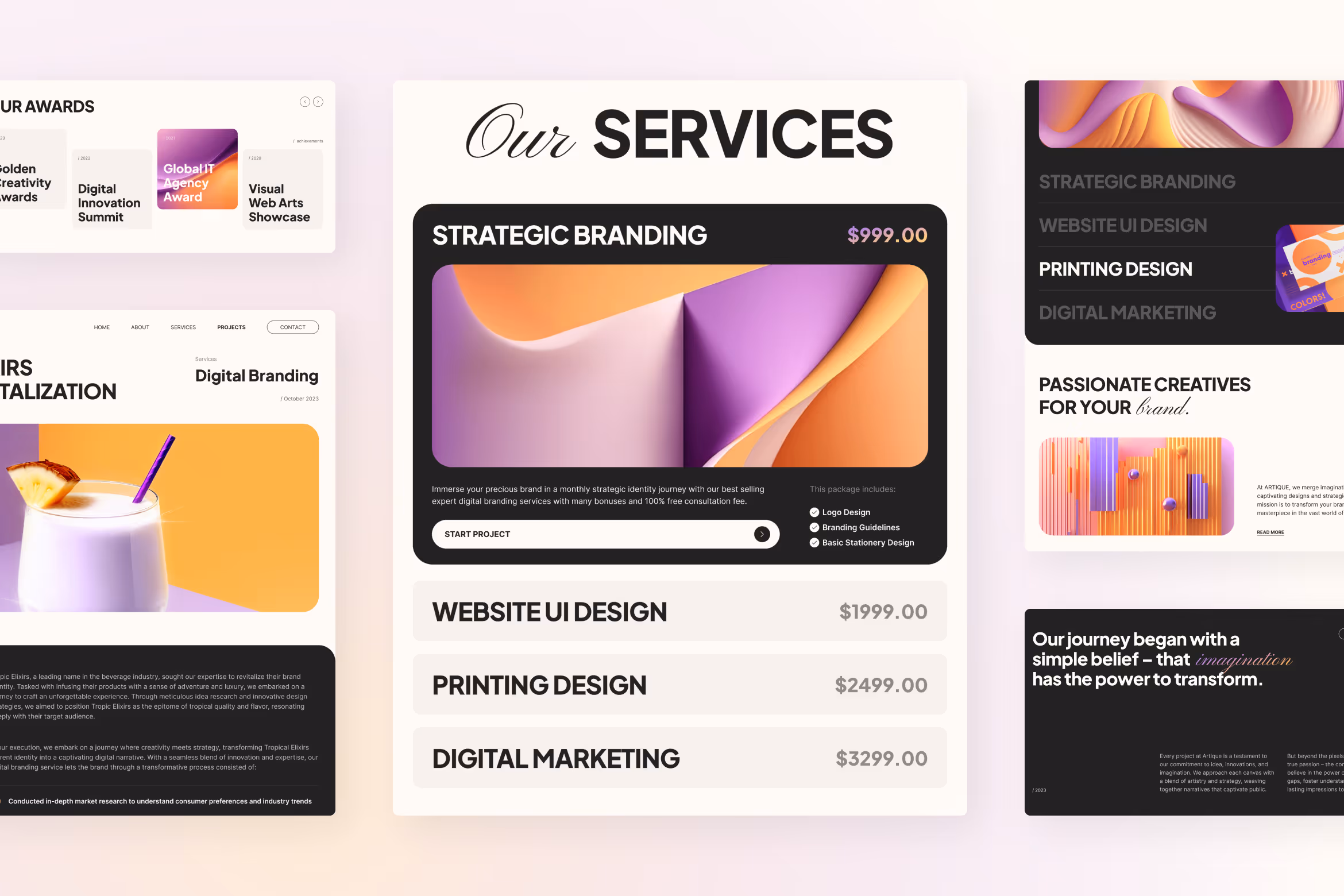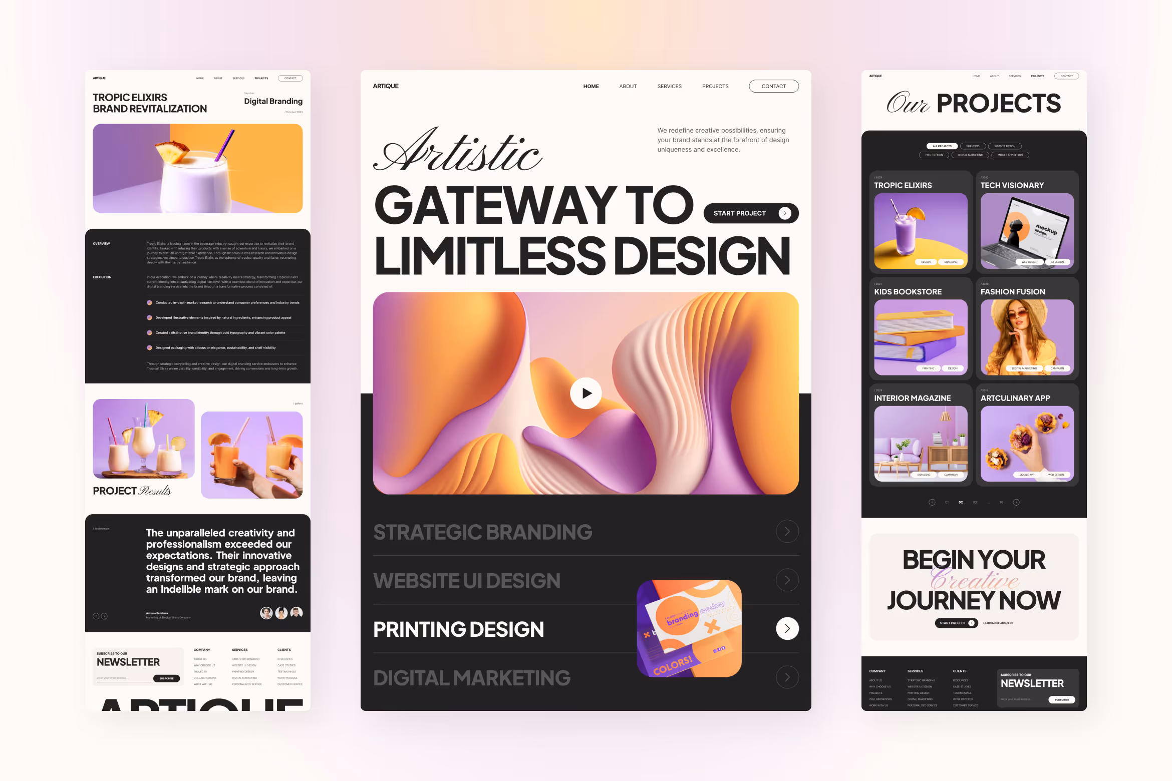 Be creative and artistic through and through using Artique, a modern creative agency website UI Figma template. Although it has a black background, the template looks so alive thanks to the combination of purple and yellow elements. It looks so refreshing and eye-catching to the audience. The clean layouts and simple interface make it friendly to all users. Get the template and create a more appealing creative agency website with it.