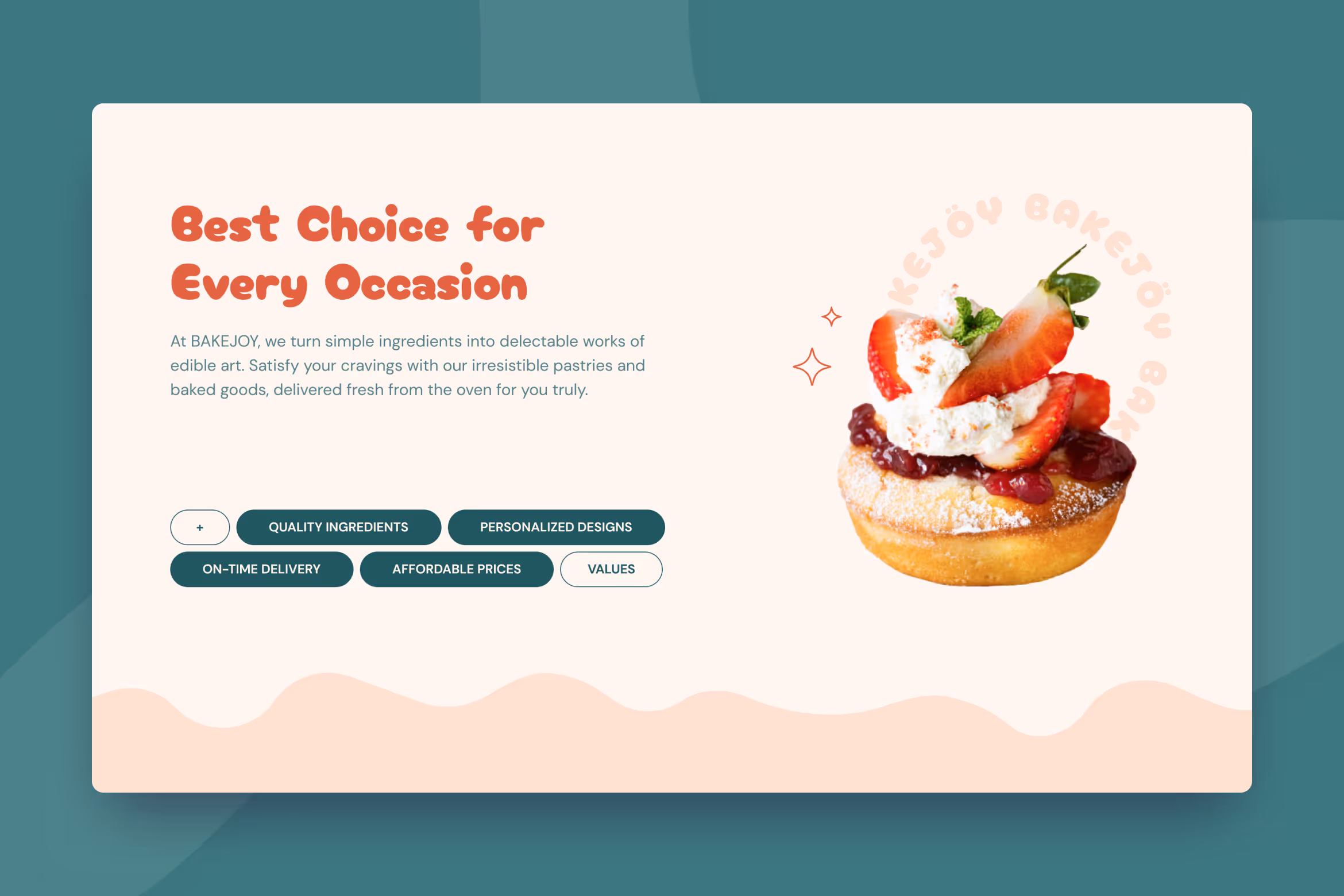 Bring the sweet touch of your cake to your shop website using BakeJoy, a cute and clean cake shop landing page Figma template. The combination of orange, green, and peach makes this template design look even cuter. Each section looks more attractive with wavy dividers like the cream on the cake. Make your website visitors become your customers by providing an appealing look using this template.