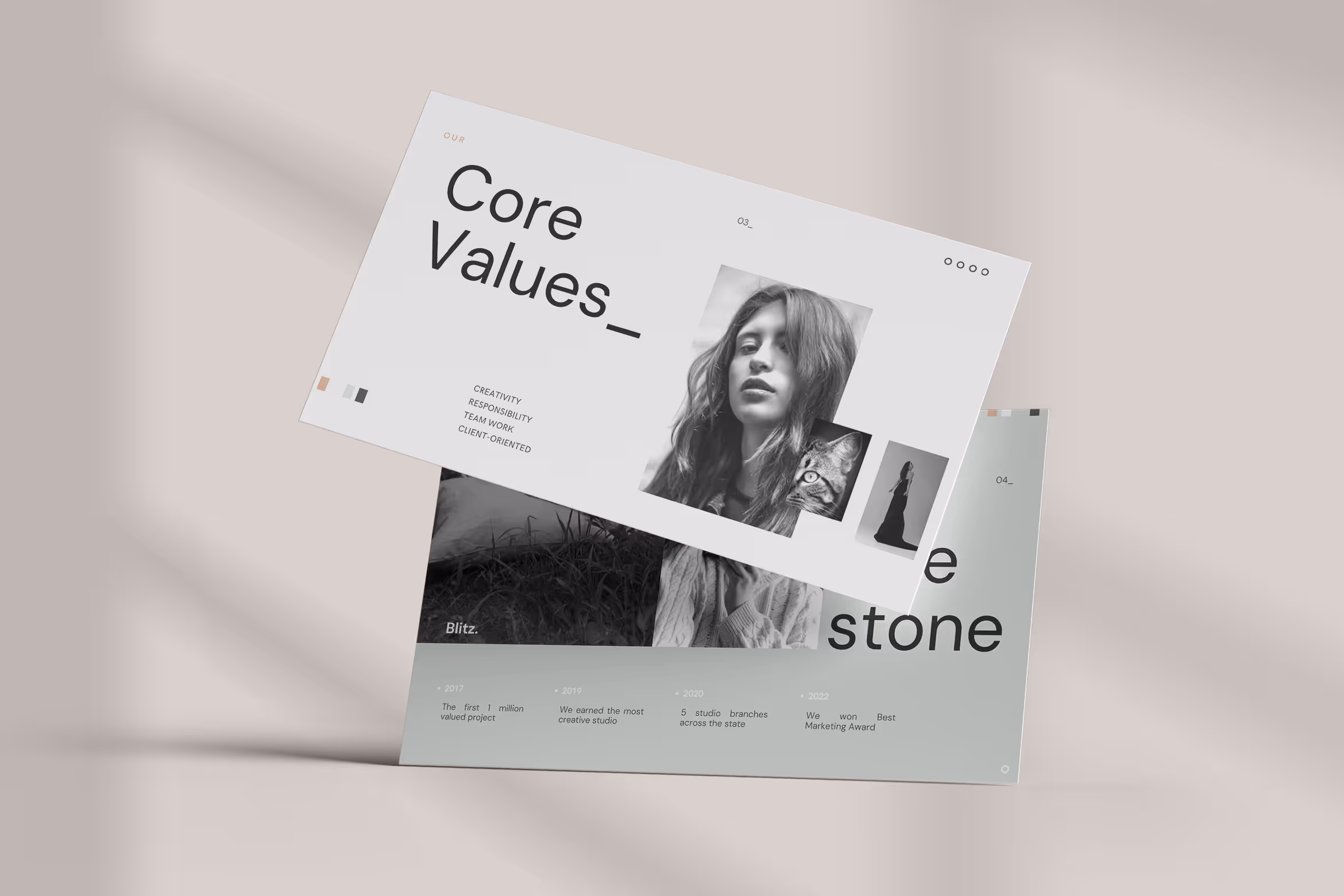 Branding a business is a must if it wants to be easily recognized by customers or the target market. It is the job of the branding strategist and sometimes the marketing division to realize it. However, for a more accurate and concrete result, many prefer to get help from a specialist like your company usually provides. To gain the customer’s trust, the proposal you offer and submit to the prospective client should be attractive enough. Blitz, the natural tone editorial brand proposal presentation template, from us will help you to score a goal.