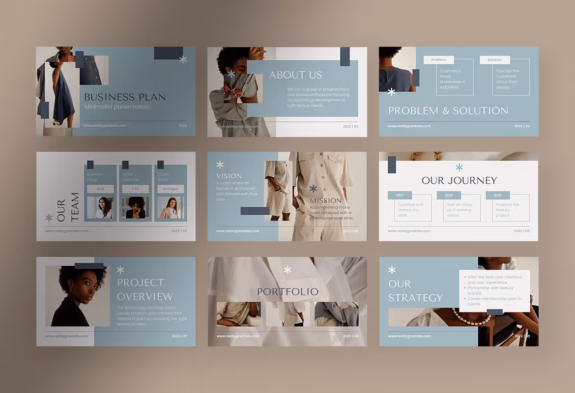 Using the blue tone combined with white color, this template can make an eye-catching presentation that can keep the audience focus on your business plan. It is also well-organized, clean and neat that can help you put your plan properly and orderly to make it more understandable. With this neat and clean layout, this template is also perfect for a company profile, business offer, or marketing kit. More investments, supports and clients are in your hand when you can deliver your business plan properly using the most suitable template.