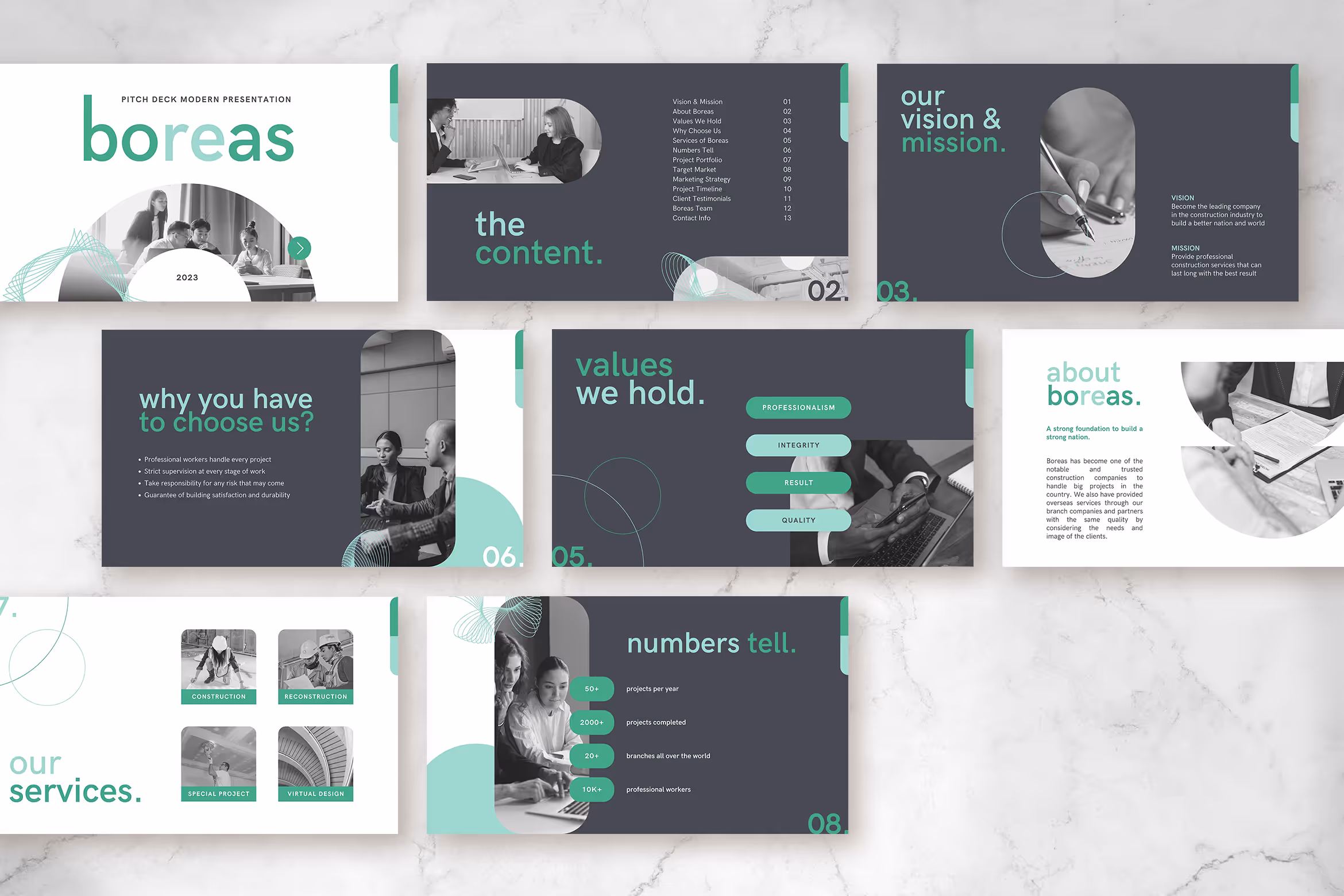 As a business owner, you must want to make your business grow bigger. At this point, generating many investors is one of the ways. As a result, you must prepare a professional presentation of your ideas briefly to attract your audience’s attention. You can use a pitch deck presentation since it is usually used to propose business ideas concisely. If you don’t have enough time to present your ideas attractively, you can use Boreas, a dark liver modern pitch deck presentation Canva template, to work instantly.