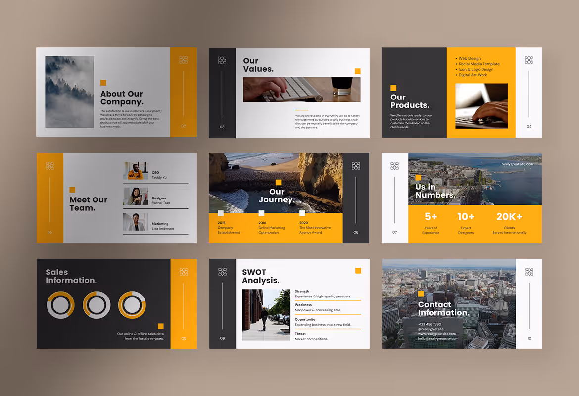 Using this template, you can give an eye-catching and outstanding presentation that can capture the eyes and hearts of the audience. The combination of faded black, yellow and white on the template makes it look professional, while the well-organized layout of this template helps you present a neat presentation. One thing that makes this template more outstanding is this template is in an animated version. No one will distract the audience from this attractive presentation.