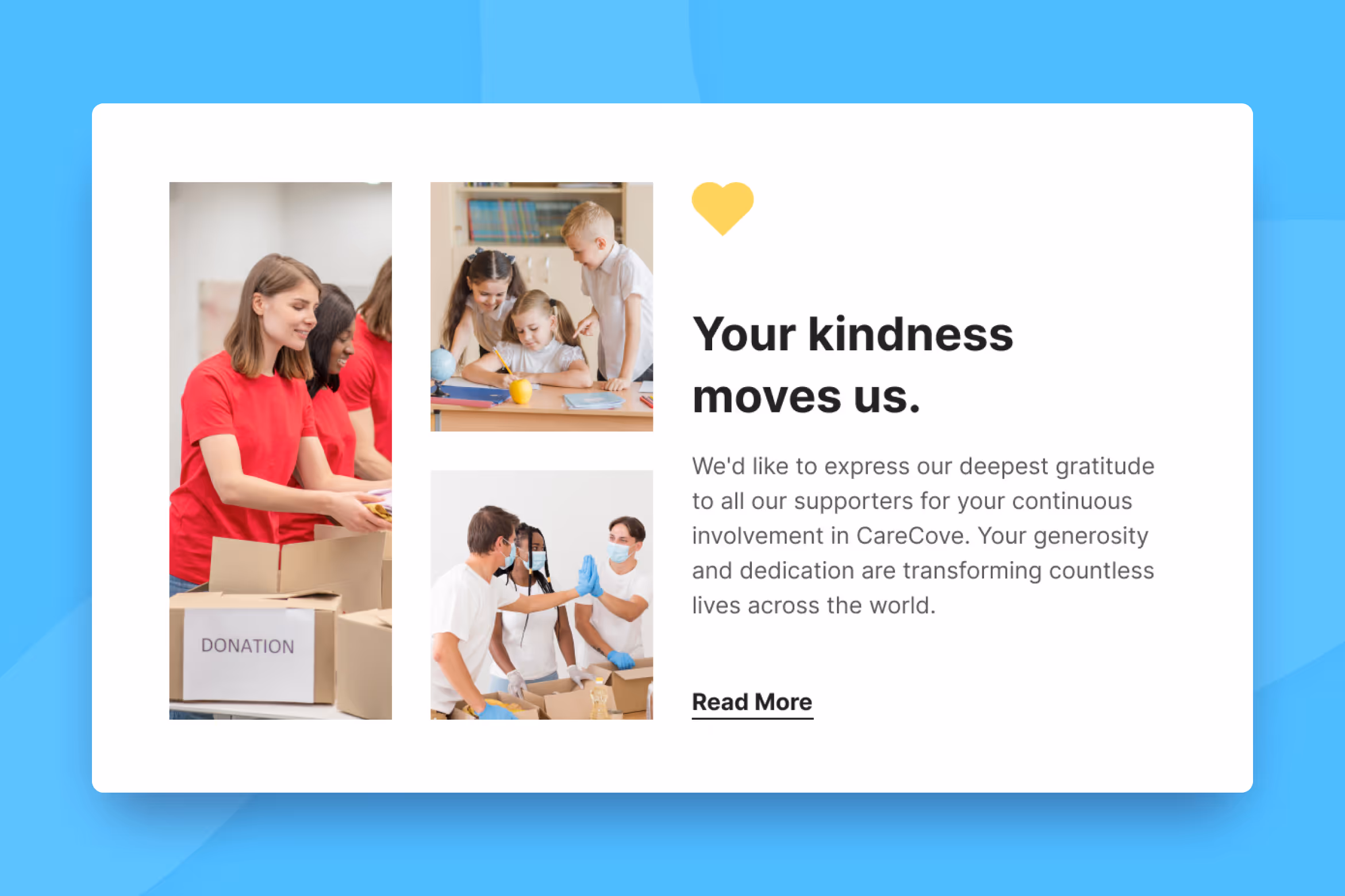 Keep your subscribers update using this simple and bright newsletter Figma template with the latest programs of your charity foundation. Edit the template easily using Figma.