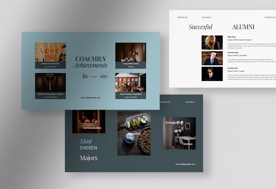 Coachily, an aquamarine minimalist university introduction presentation template, provides you with 10 unique template designs, available in PPT and PPTX format files. You can edit the text, image and color on the template using Microsoft PowerPoint or any other compatible application on your device to be more like your preferences or needs. Help documentation in a PDF file is included in the package to assist you in editing the template. But, if you find any difficulties or issues that Help cannot cover, or you have any questions and inquiries regarding this product, you are always welcome to contact our support team at any time of your convenience.