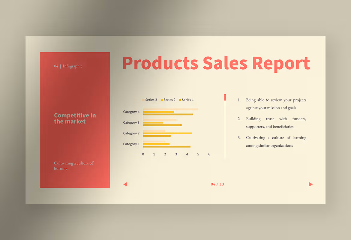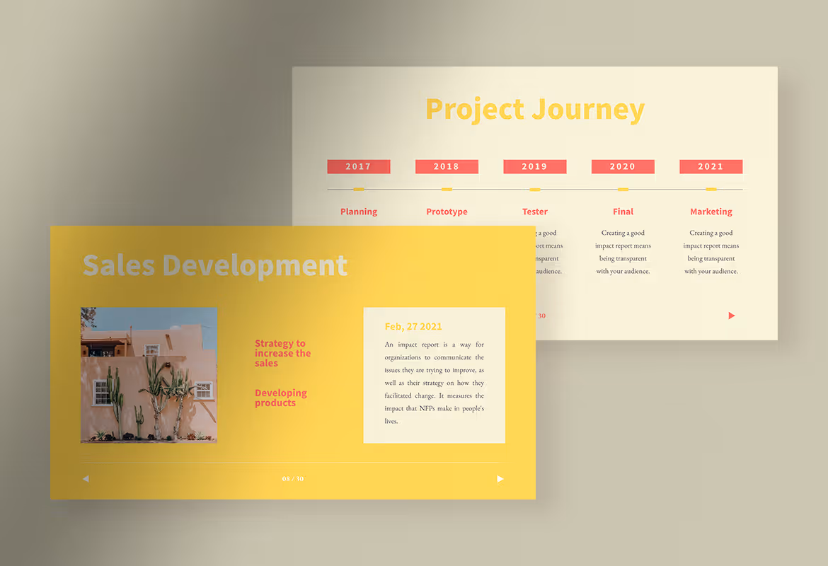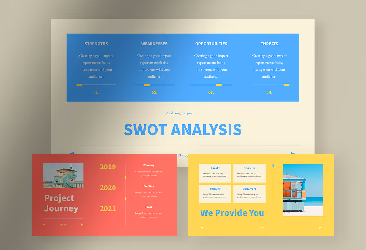By using colorful background but a simple design make this template functional and at the same time will avoid the boredom that usually arises during the presentation session. The well-organized layout and spacious space help you edit the template more easily and freely based on your company’s needs.