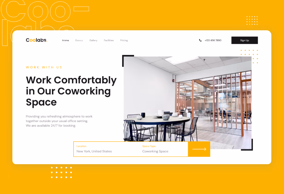 The co-working space business becomes a trend now, as the result of the working styles changing since the pandemic COVID-19. This business is a perfect alternative for both employers and employees to create a brand-new working atmosphere since it provides a space to work for the workers and a chance to participate in the local business community through the network created. Coolab, a working space website template, is specially created to fill the needs of business owners to provide working space service with a convenient and eye-catching website layout.