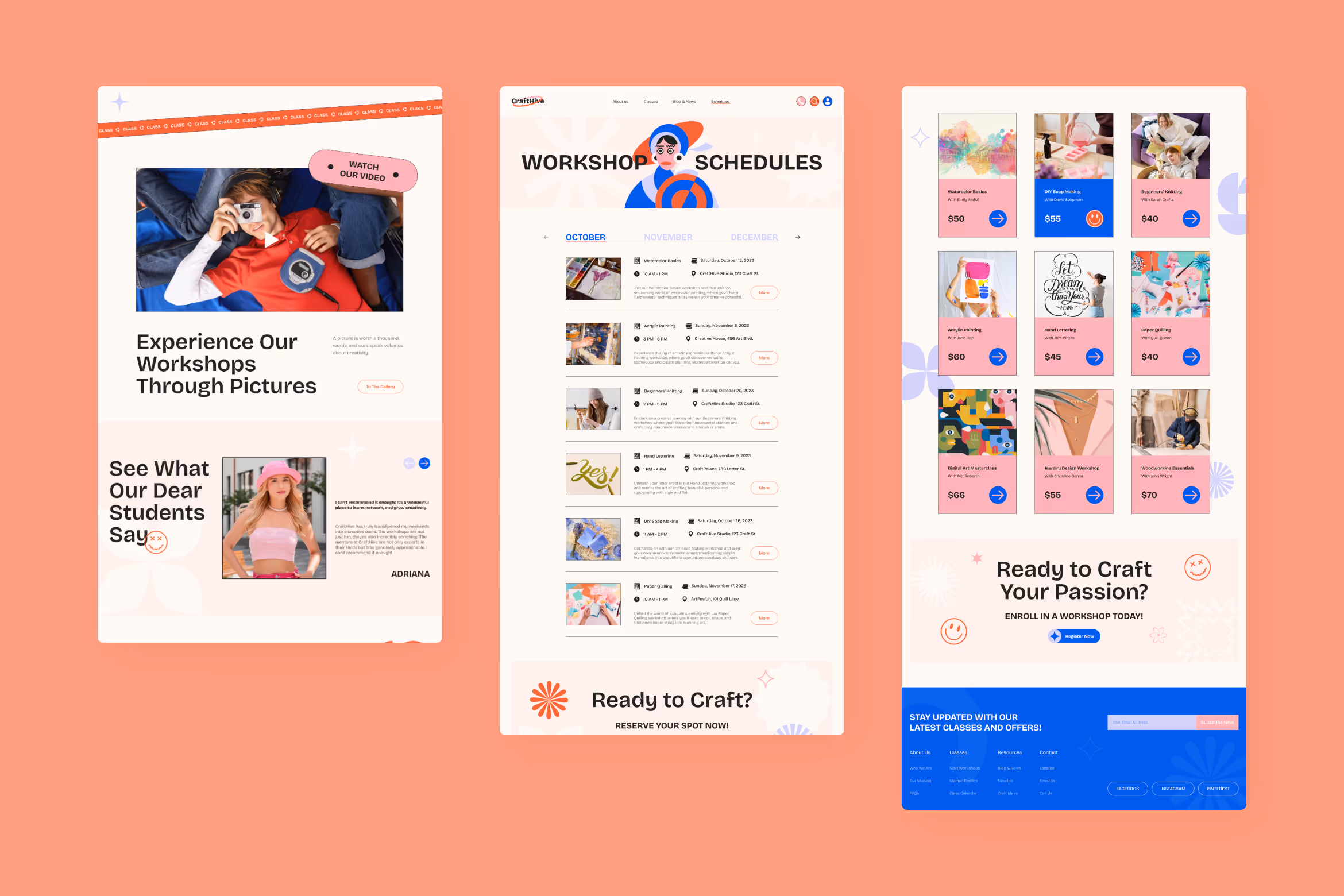 Get a more comprehensive website appearance to create a professional impression using the CraftHive extended version, a fun, and bright creative workshop website UI Figma template. You can get a bright and cheerful vibe all through the pages, not only the home page. It is also equipped with a neat layout. So, every visitor who wants to explore can access it easily. Apply this template to your creative workshop website to get a wholesome look and more people to join your classes.