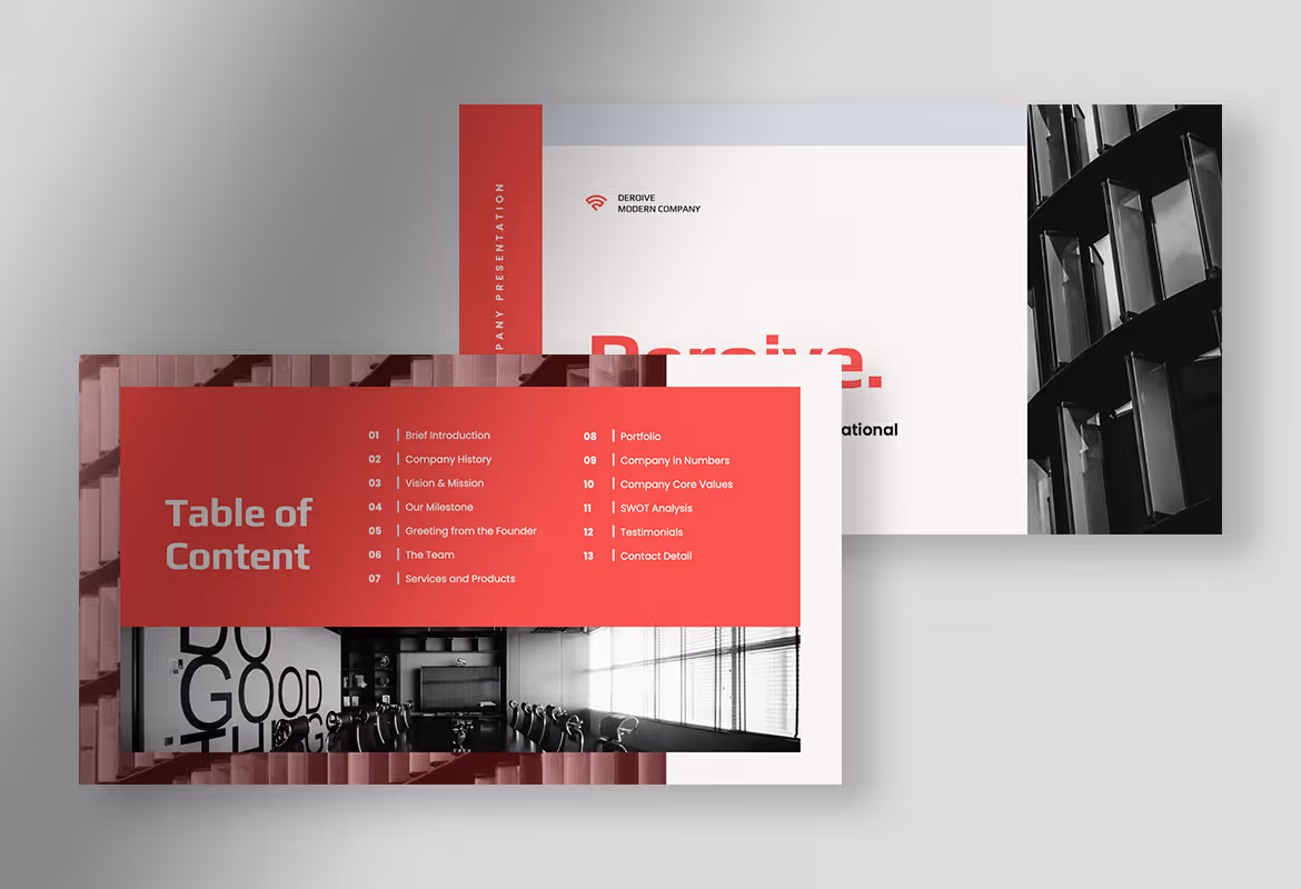 A company profile is considered an essential tool for all business owners to introduce their business. It is like the first gate before your potential investors and customers decide whether they want to work with you or not. If you are looking for a reliable and professional presentation template, Deroive, a living coral modern company profile presentation template, can be the best option to deal with your issue.