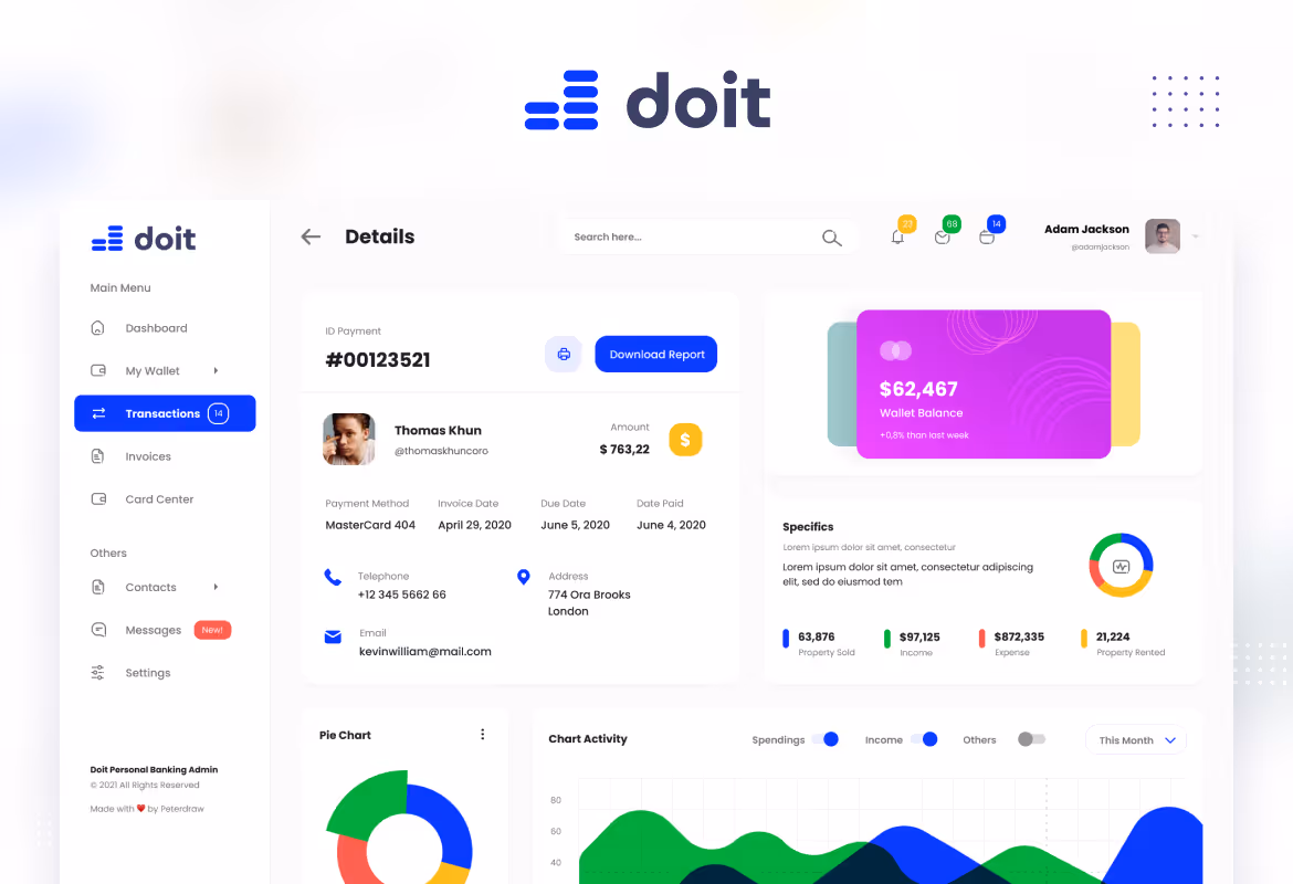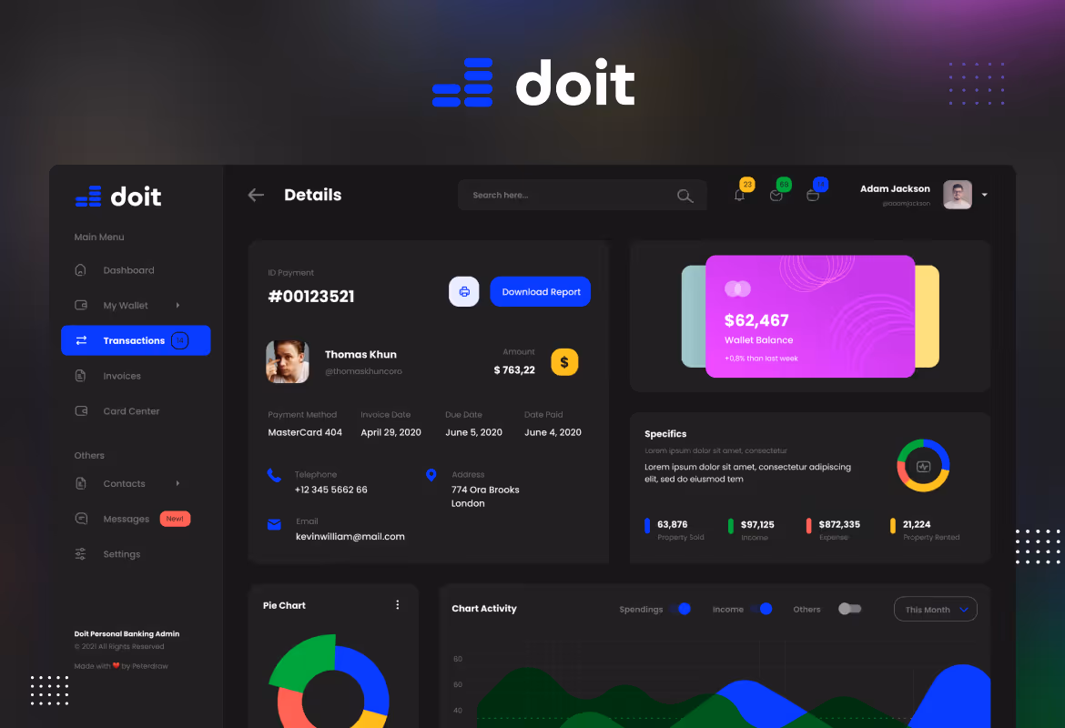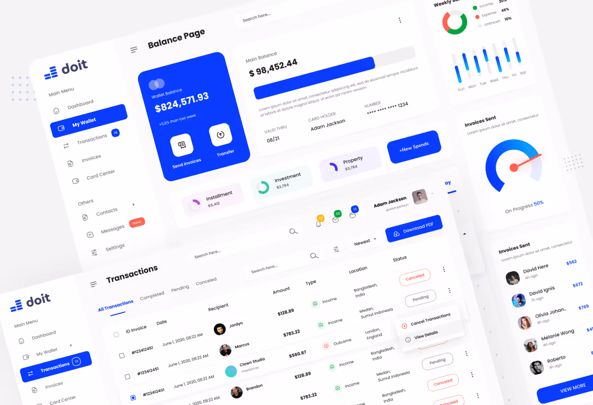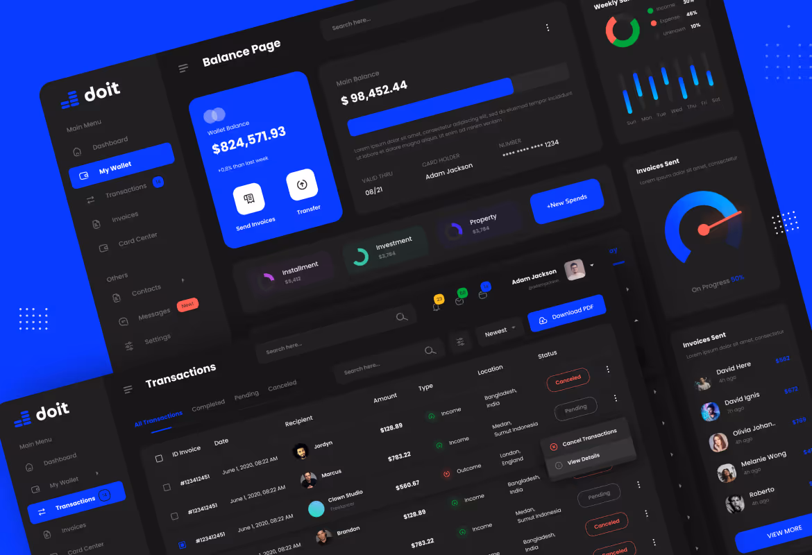 Doit Dashboard available in PSD and Figma format template and available in light and dark mode. Every single package of this personal banking dashboard included with the user guidance in PSD and Figma so it’s easy to edit and customize using Adobe Photoshop and Figma based on your preference and your need.