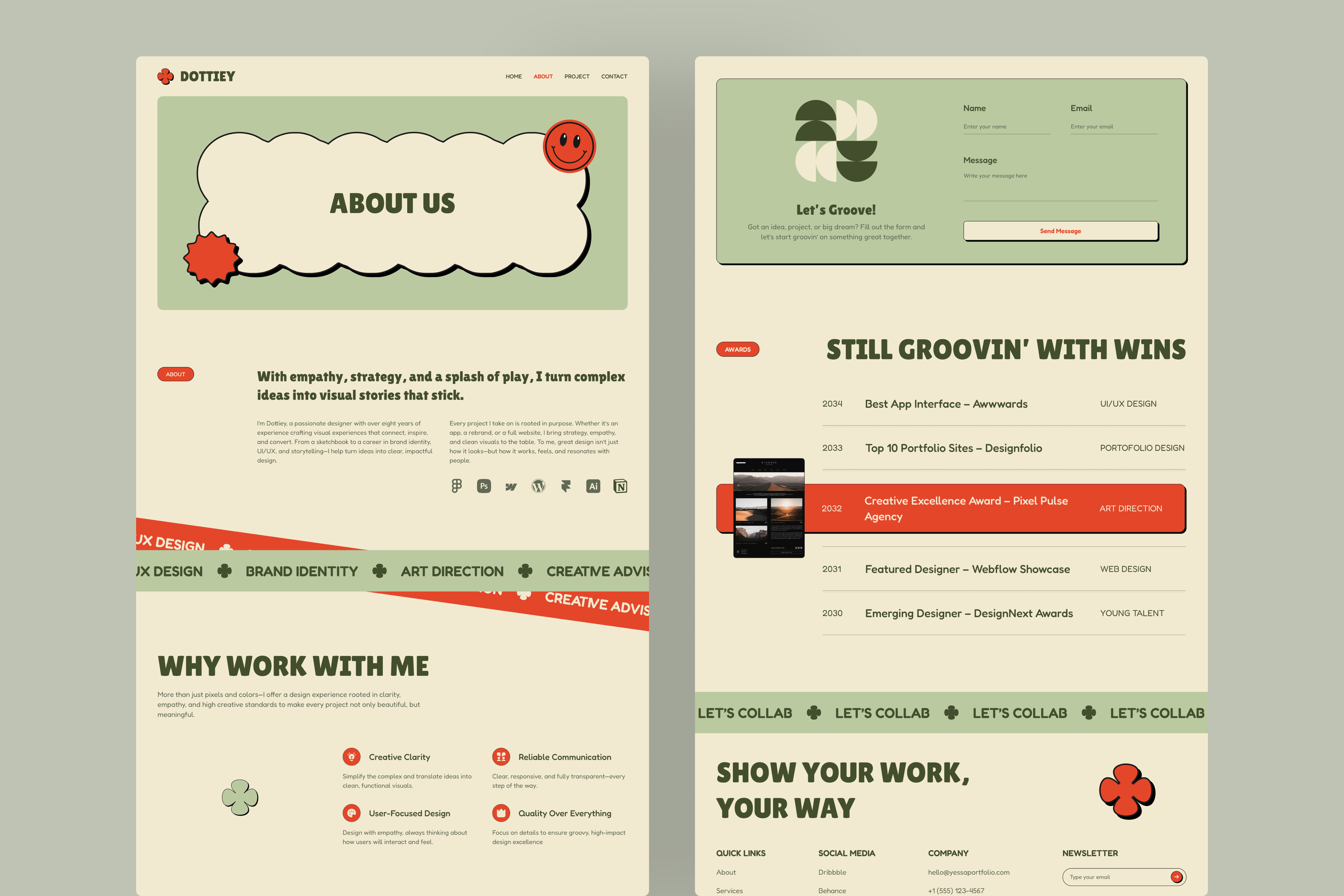 Dottiey strikes the perfect groove between style and strategy. It’s crafted not only to display your portfolio beautifully but also to communicate your values, workflow, and credibility with confidence. From the bold homepage to the case-study-driven project layouts, this template ensures that potential clients and collaborators leave with a lasting impression.