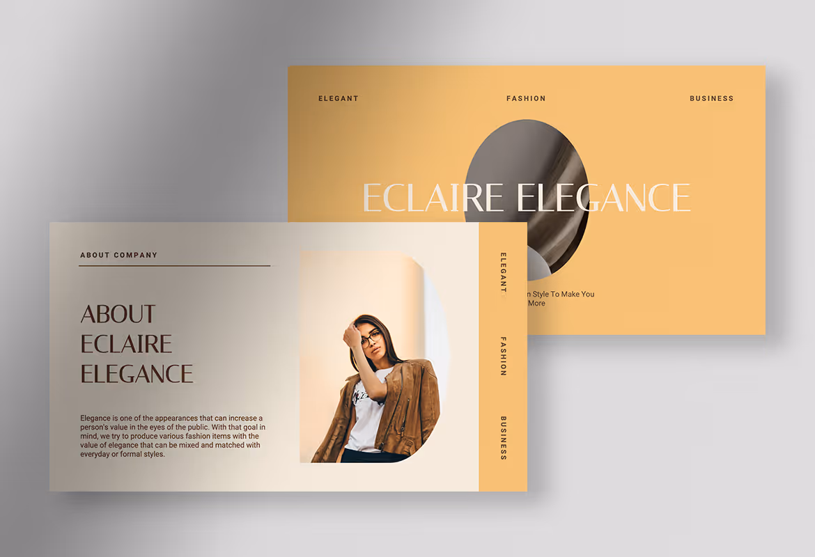 Many people prefer an elegant look to present their fashion business to look more classy and professional. This look also can help you elevate your business value in front of your audience, especially your clients and investors. You can’t depend on your usual template design with a rigid layout. For you who need something elegant with creamy touch on every slide, our Eclair, the creamy elegant fashion business template, will be the best choice for you.