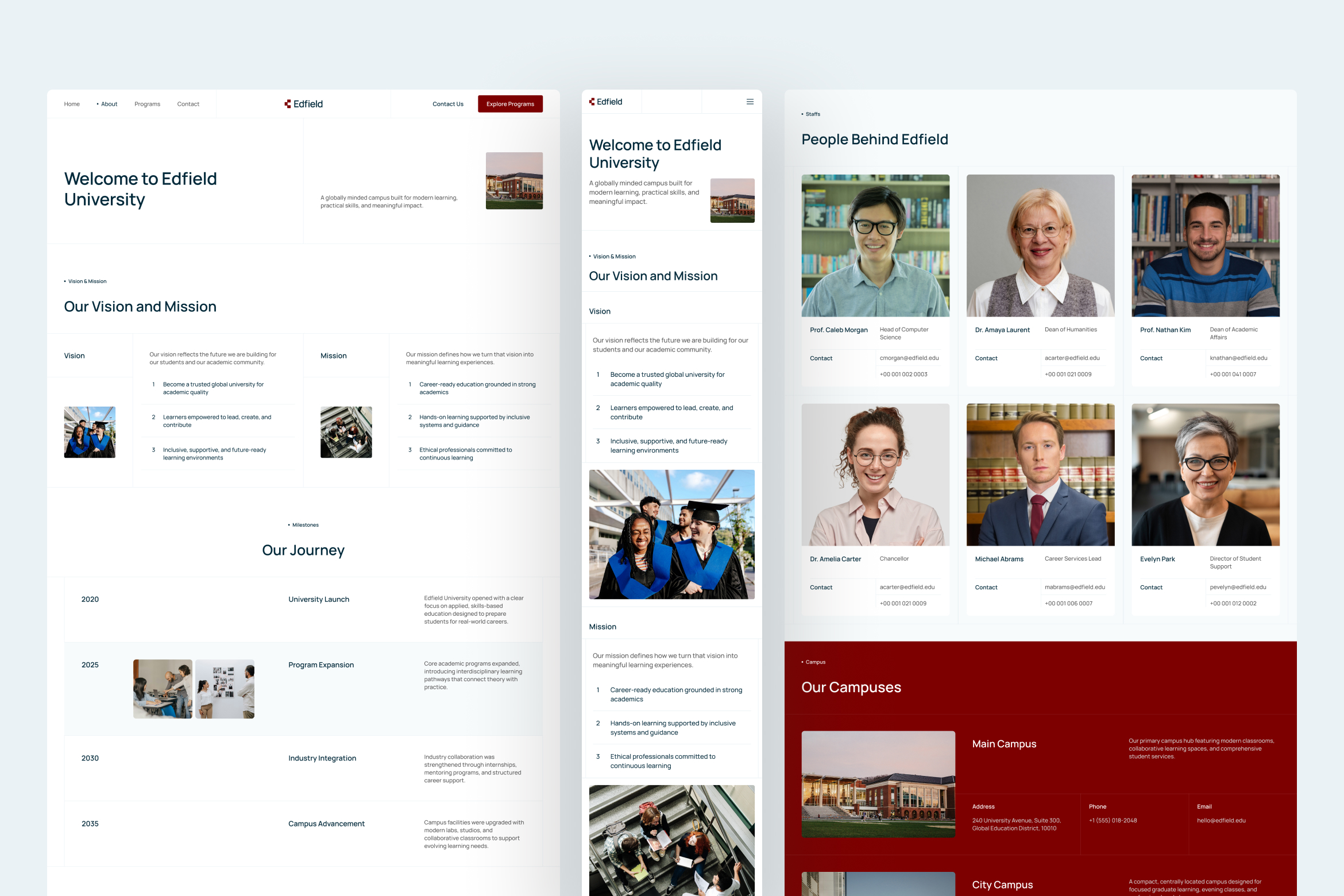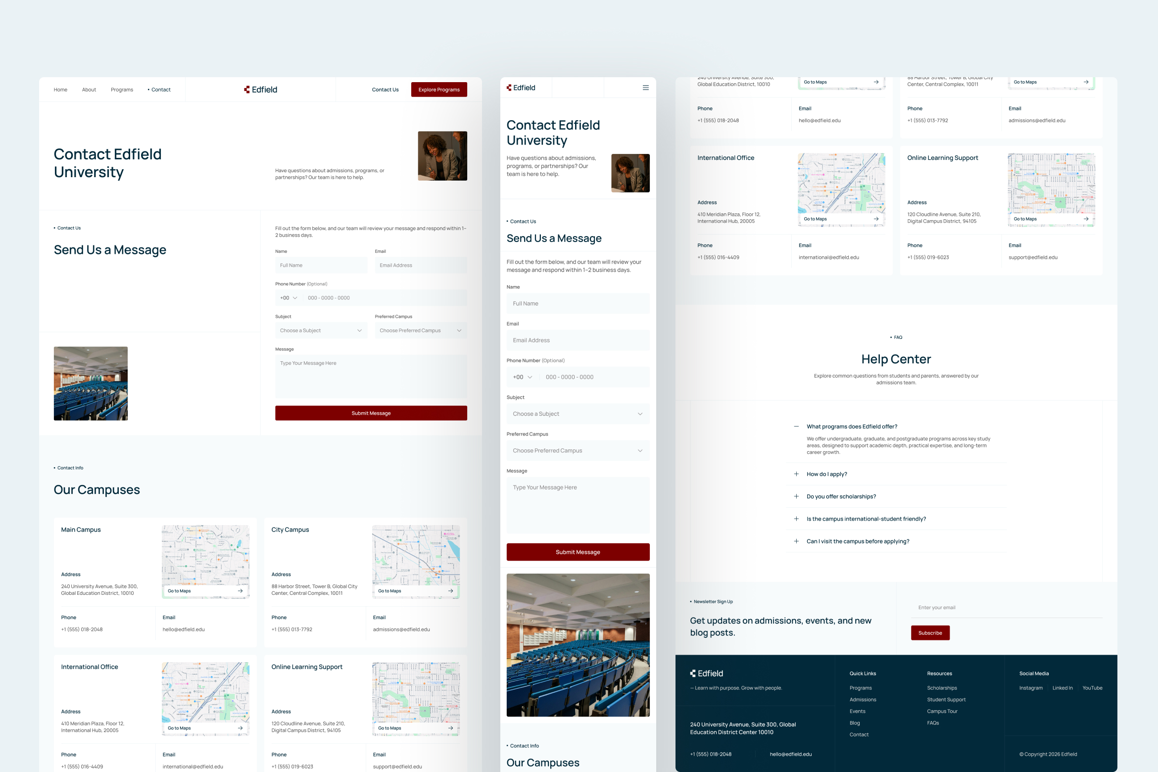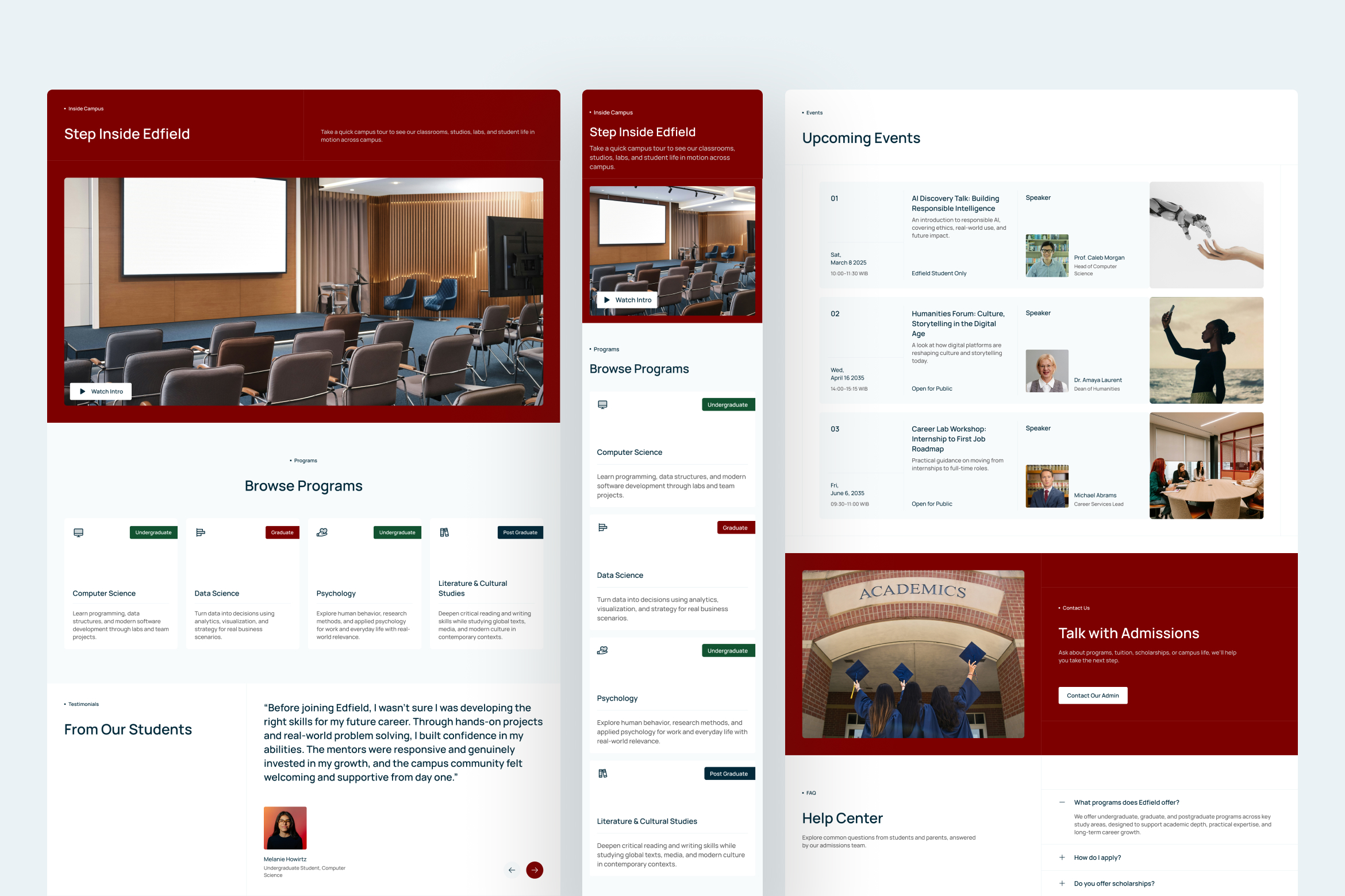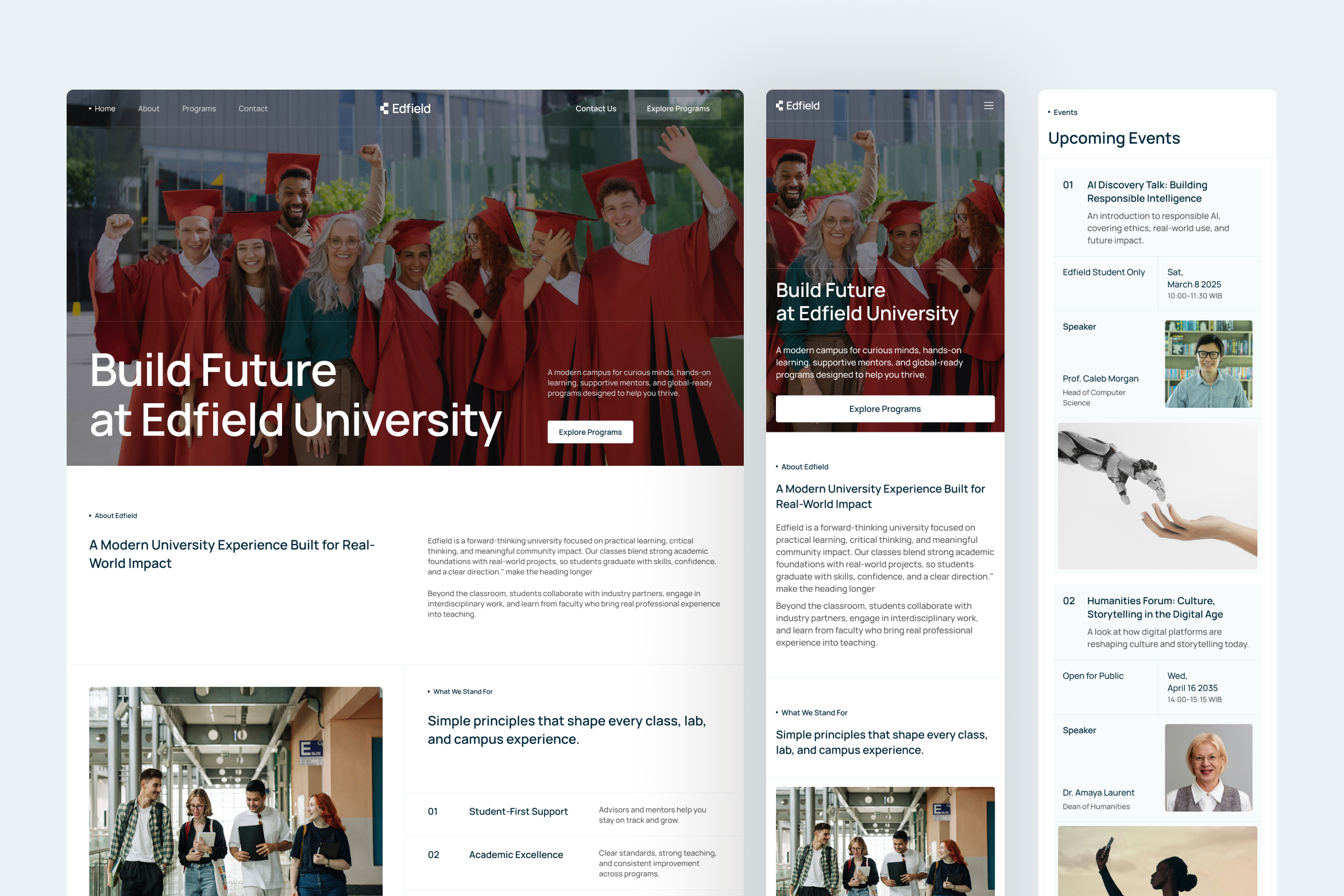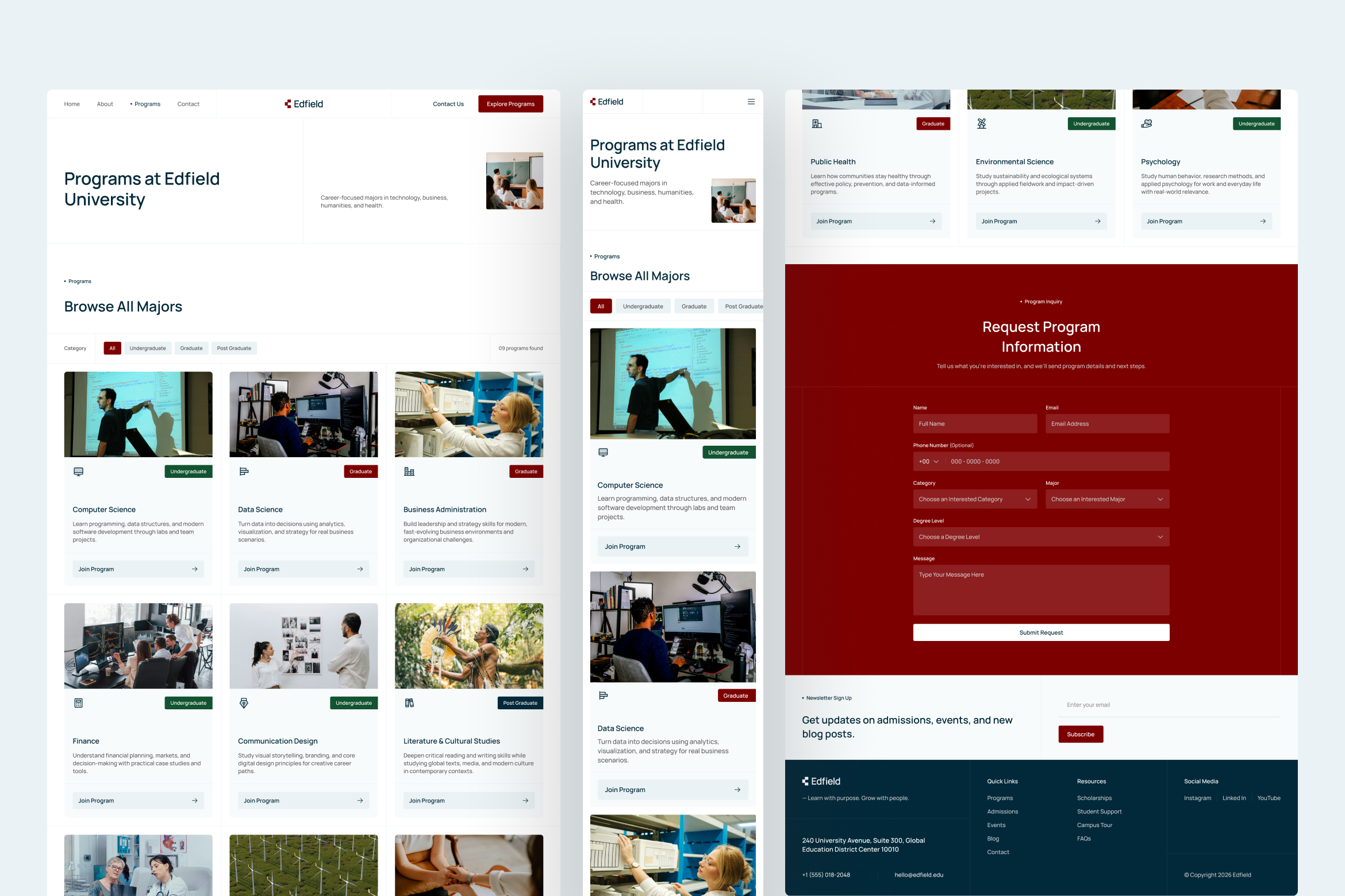 University websites must balance authority with approachability, and Edfield is designed to support that balance throughout the user journey. The interface emphasizes clarity, structure, and readability, allowing users to absorb academic information without feeling overwhelmed.