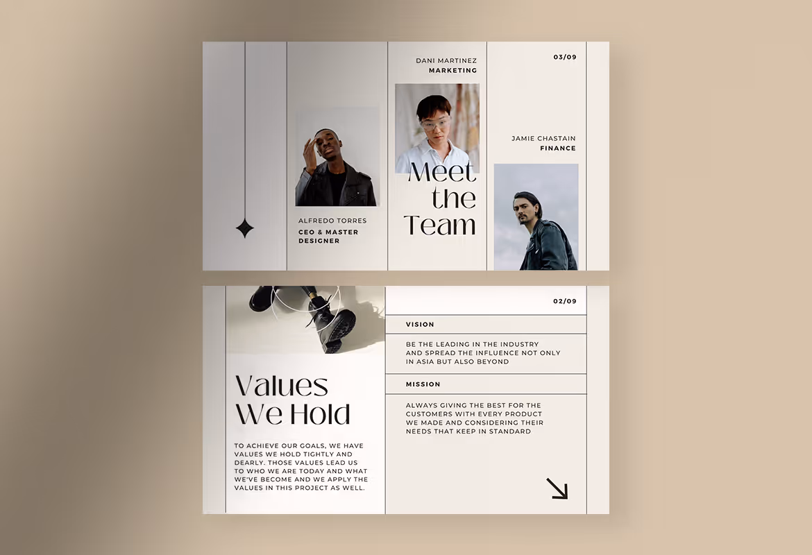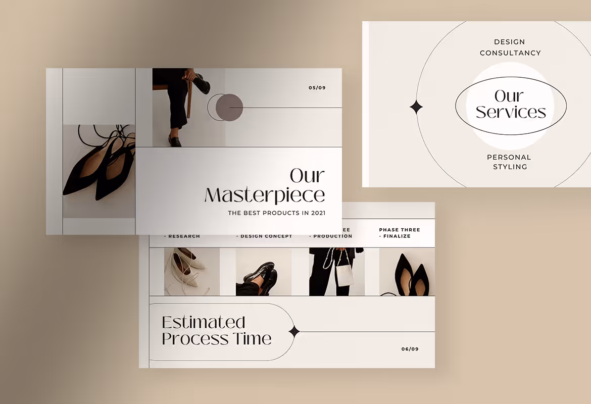 With its elegant appearance, this template is perfect for you who need a feminine vibe. The ivory white and soft gray color as the background makes it more eye-catching. The well-organized layout and proportional composition slide the template provide can help you provide a better proposal appearance that will attract your audience and focus on your company offers. Thus, this presentation template sot only suitable for your business proposal but also for your company profile, marketing kit and more.