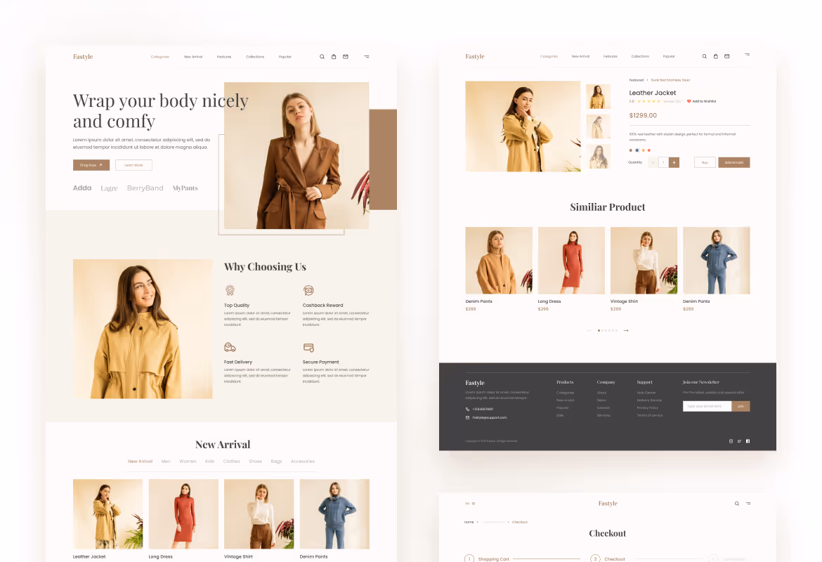 The simple design and user interface offered by this template are easy to use by anyone, even for you who just start an e-commerce website. To provide convenience to your customers, you will get a complete set of website templates from the homepage to the checkout page. Make your e-commerce website more outstanding and eye-catching by using Fastyle.