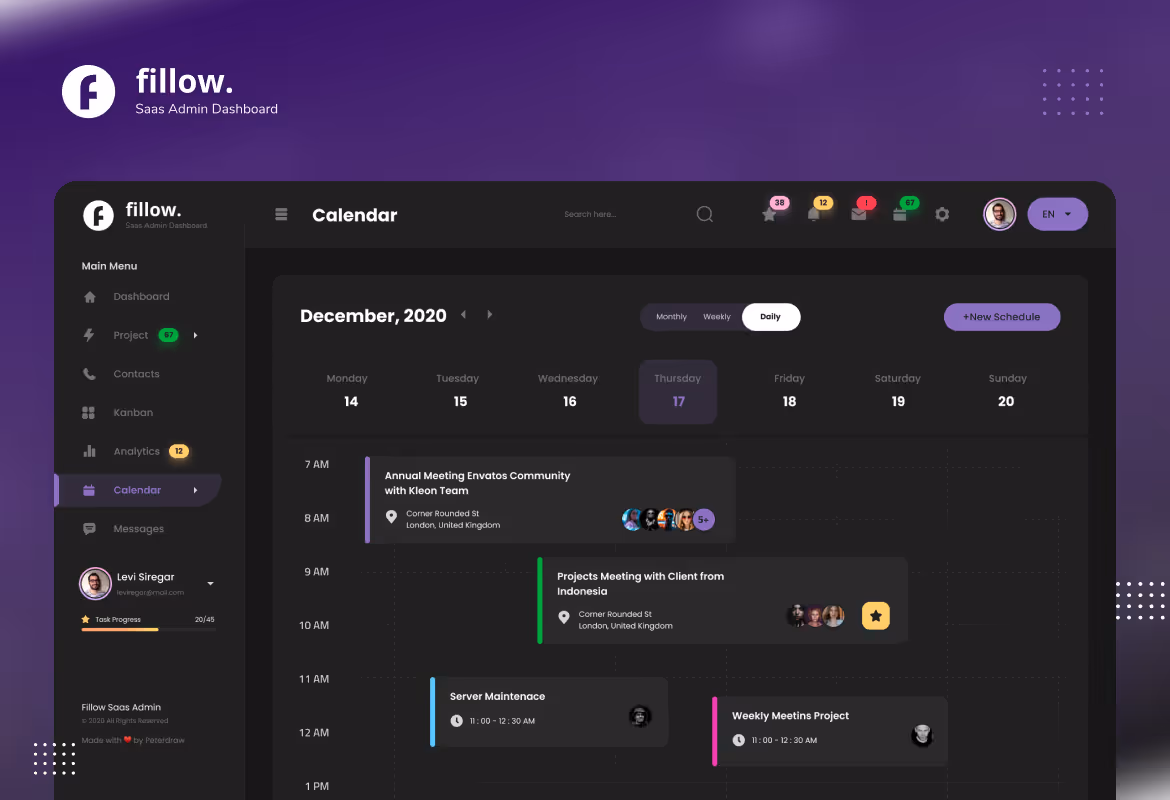 Modern dashboard User Interface design template for a Saas and Project Manager. This template is ideal for saas, project management, project manager, kanban app, and any admin dashboard website.