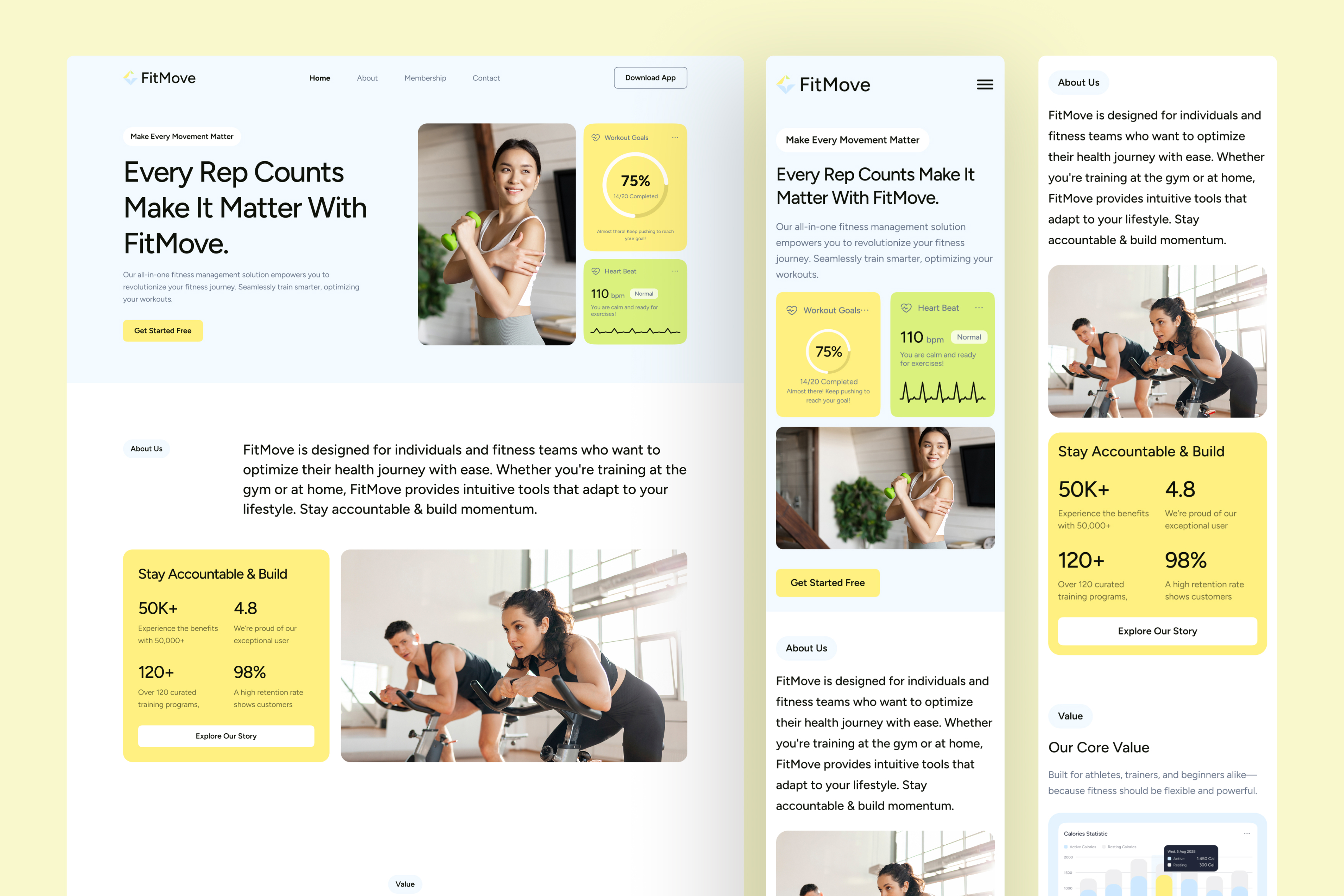 FitMove emphasizes goal-driven design and seamless user flow across every page: