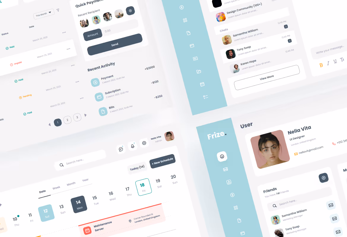 This template comes with a comfy and friendly user interface that makes it easy to use by anyone with complete pages from banking, chatting, calendar, contact, email, and more. It also includes various necessary charts to show market data, sales and so on, in light and dark blue colors. While for the design, its design can make your admin dashboard neater and help you work faster in organizing everything.