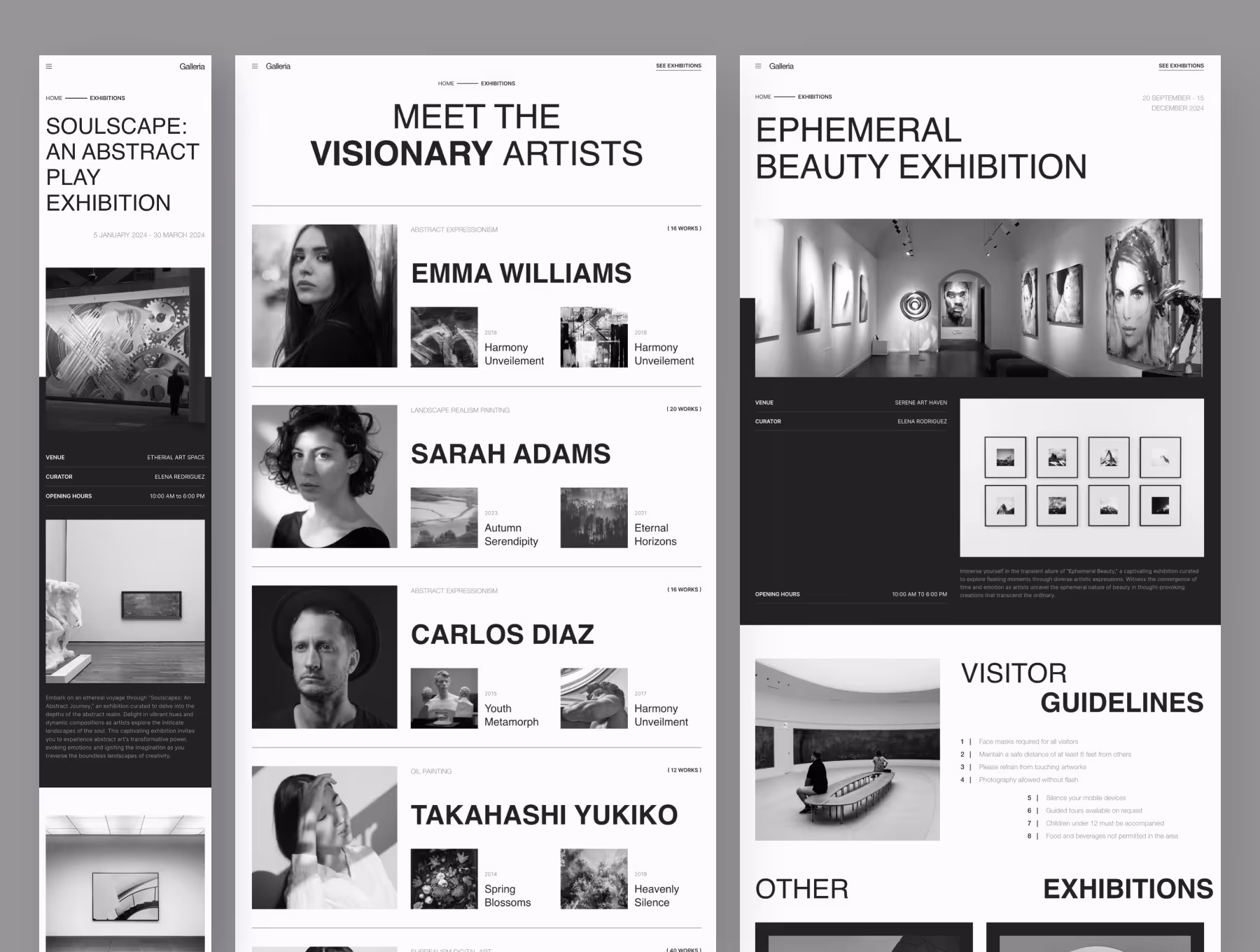Charm all art lovers with a gorgeous and artistic from Galleria, the classy and professional art exhibition website Framer template. It has a classy color combination that is more exquisite when the user uses the template. Its neat and clean layout gives a professional look that perfectly matches its artistic vibe. Make a change in your website and get a better performance from time to time using this template.