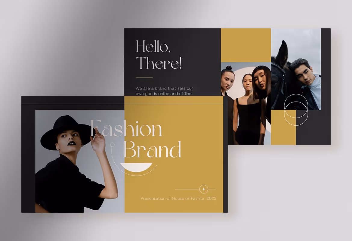 This template has a classy and luxurious feel from the combination of black and yellow gold on the background. The well-organized layout makes this template more eye-catching and easy to understand by the audience. By this arrangement and design, this template is perfect for a brand guideline, fashion company profile, marketing kit, or any other presentation using this template. Strengthen your fashion brand position in the audience’s eyes by making the best presentation using this template.