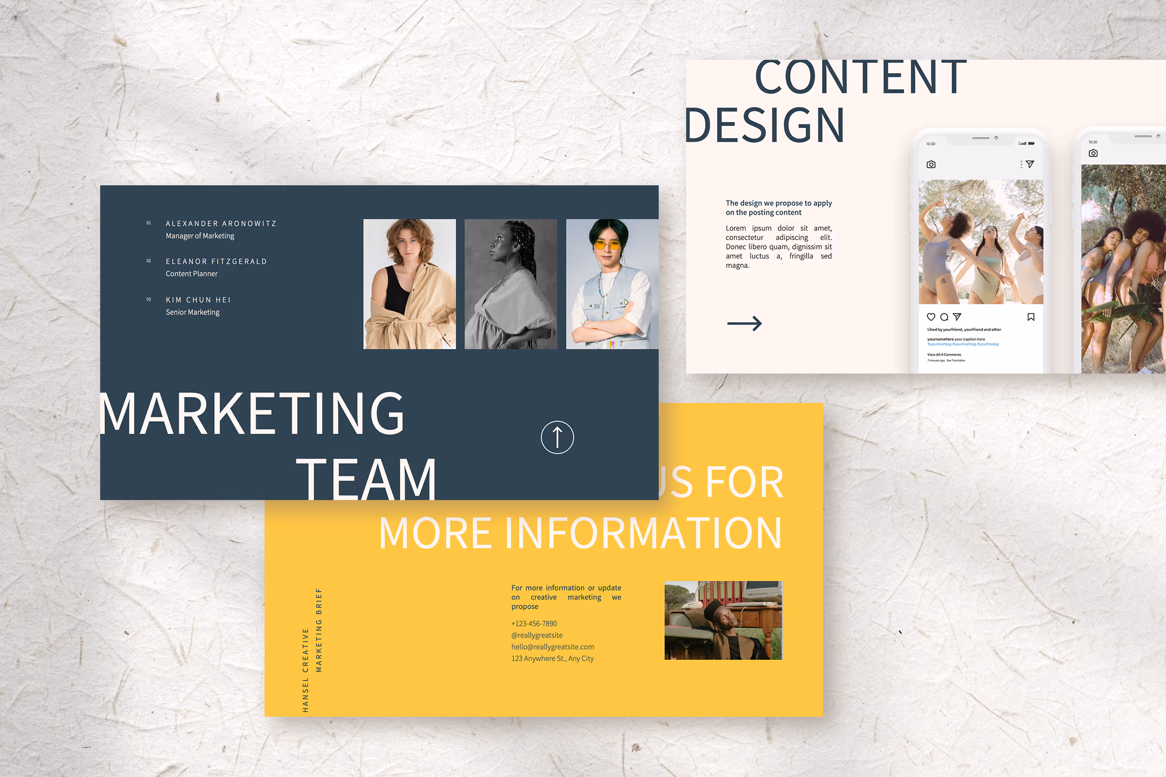 Digital marketing is increasingly needed. Various marketing agencies with digital services will be increasingly flooded with requests. It will happen only to the known agencies. Even so, you don’t need to be discouraged if you can’t win a prospective client’s heart and lose to a big agency. As long as you have an interesting offer or proposal and can convey it well, you have the same opportunity as them. Hansel, the solid clean creative marketing brief presentation template, will help you amaze your prospective client.