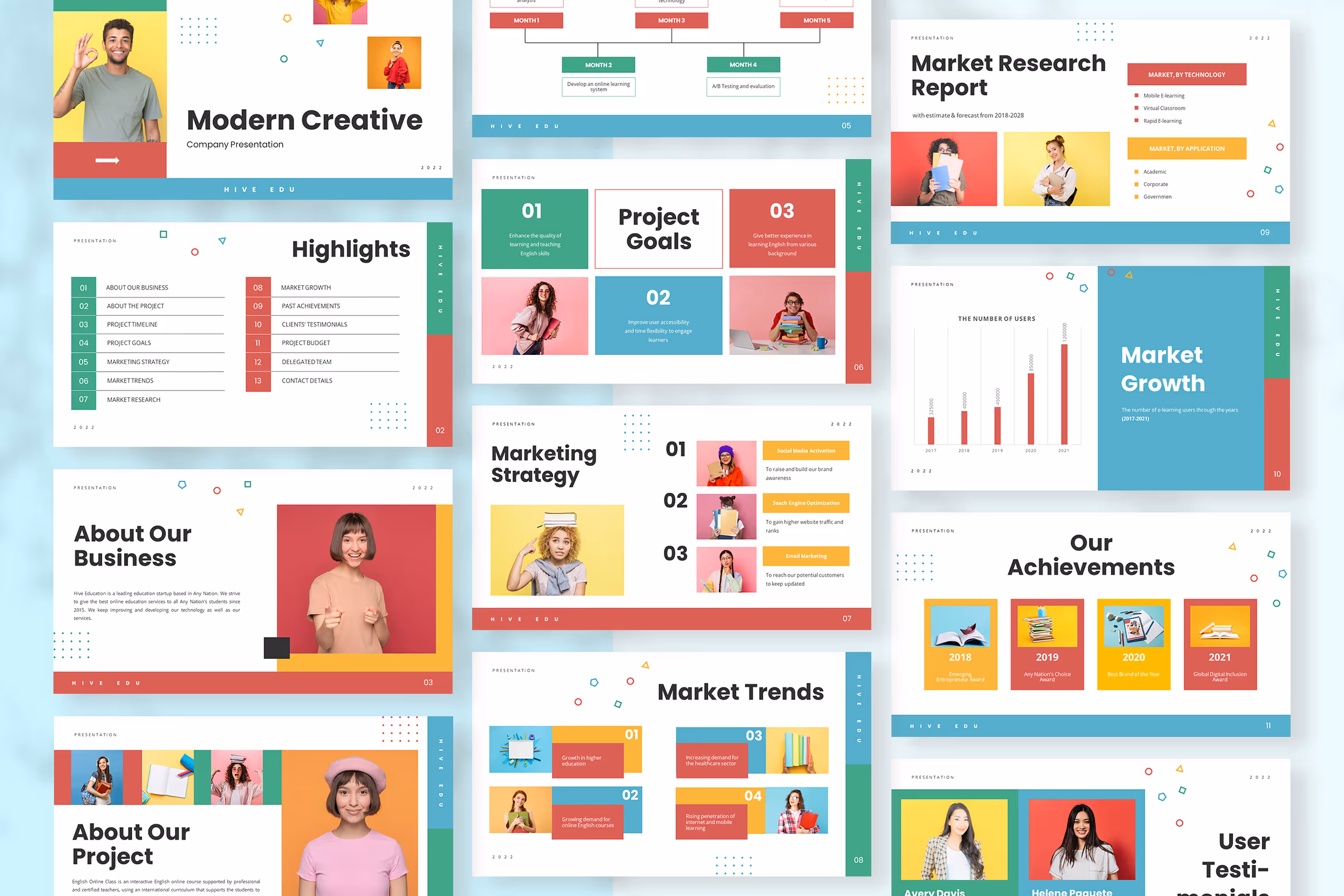 A startup is resonated with innovation to provide better, faster, and cheaper products or services that can solve everyone’s common problems. It will always need investors to leverage its level since they hold a major role in providing capital to bring the business off the ground. As a startup player, you don’t only have the challenge to deliver innovations but also present the ideas delightfully. Hive, a Colorful Creative Modern Startup PowerPoint Presentation template, can be your best companion to attract your audience.