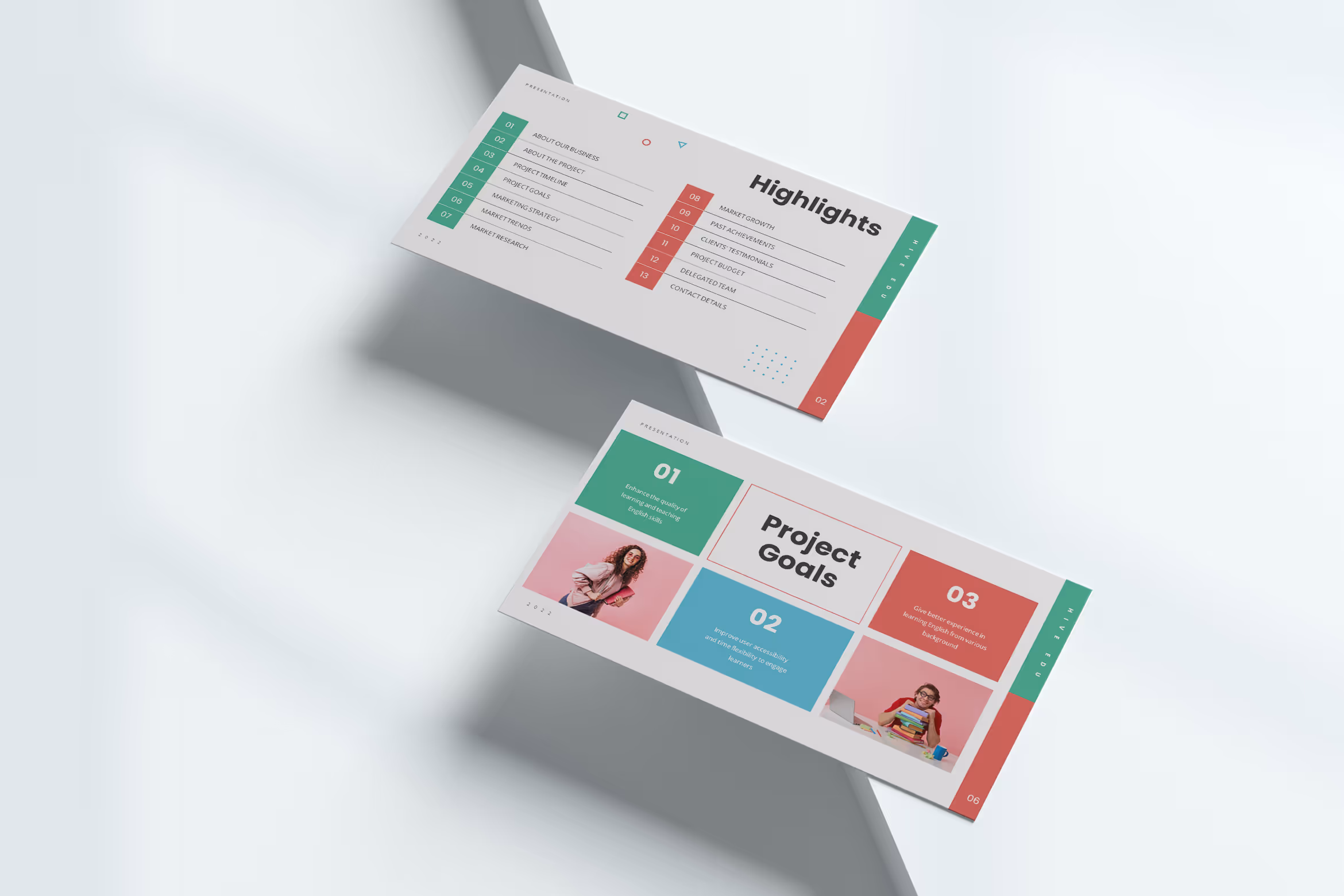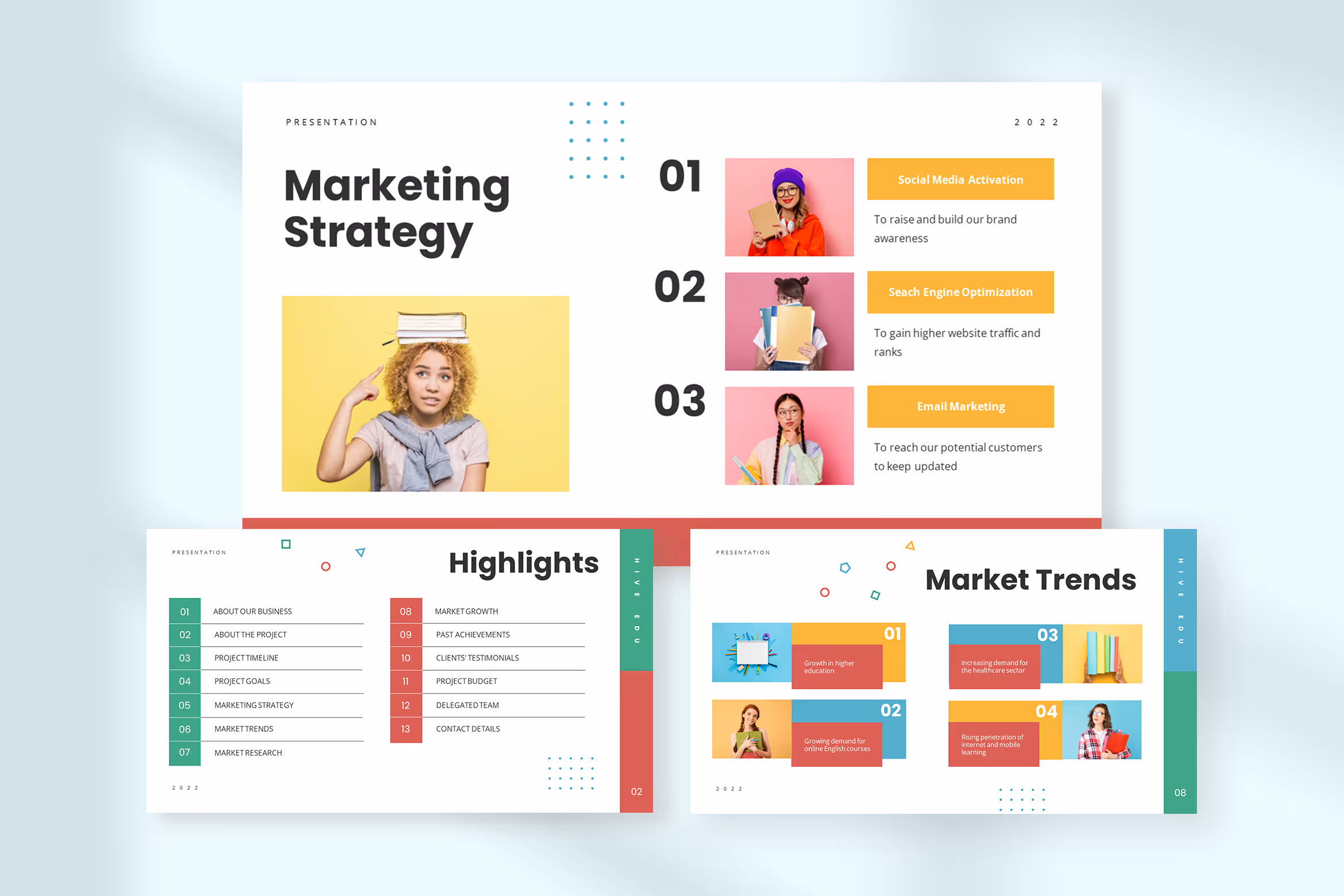 This template is designed to attract the attention of everyone who sees it. With a modern design and alluring colour combination, this template has a clean and neat look that creates a professional yet trendy image for your creative business. Other than that, this template is well-written in a symmetrical layout. As a result, you can deliver your idea attractively and gain attention as much as possible with this captivating clean and trendy presentation template.