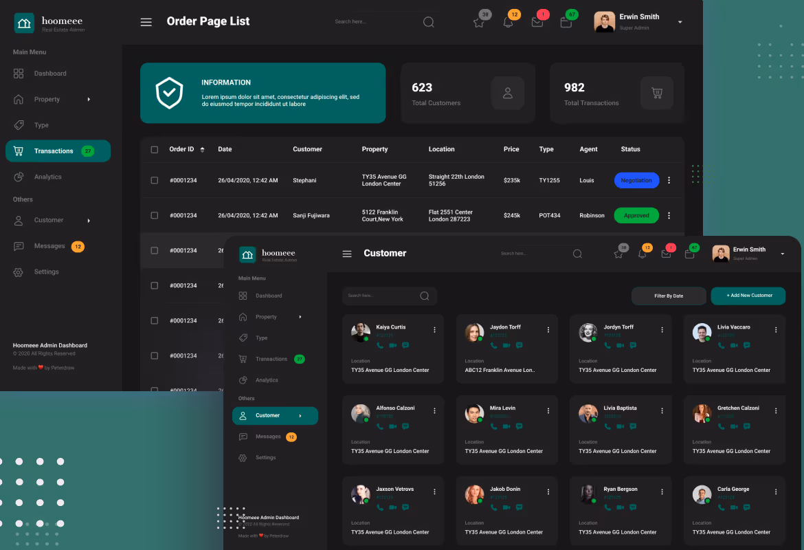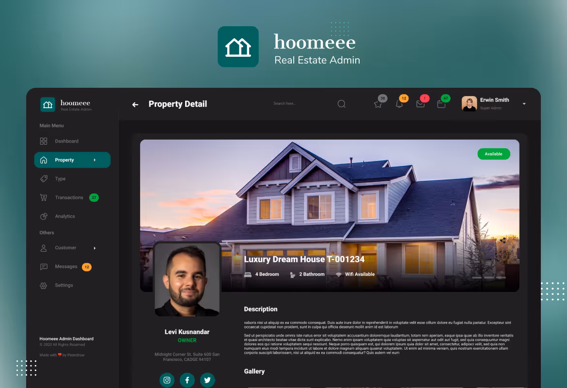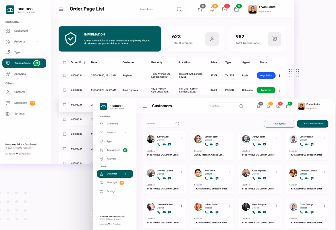 Modern dashboard User Interface design template for a Real Estate marketplace. This template is ideal for home selling, real estate, home rent, house rent admin, listing property, and any admin dashboard website.
