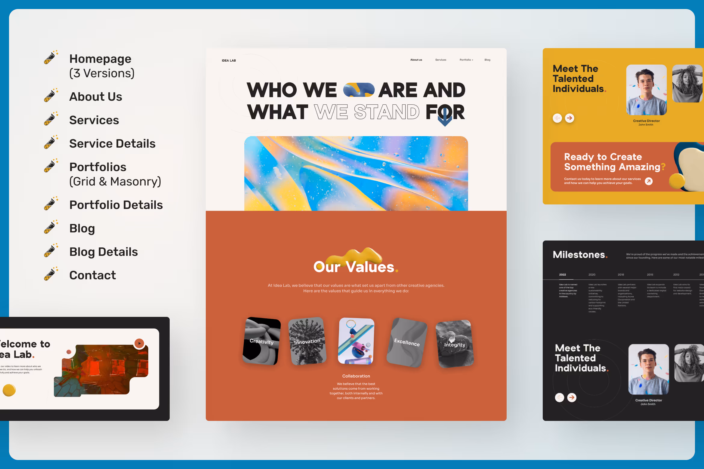 As someone involved in creative business, you should show your creativity in every aspect. One of the most significant places to show your brand image is on your business website. As the public face, you must have a good design that is convenient for your website visitors and for you as the user. It also must align with the vibe you want to introduce to the public. If what you need is a warm and clean website design, Idea Lab, the warm earthy creative agency website template, is a perfect choice. This template is perfect for creative agencies, digital marketing businesses, or similar businesses.
