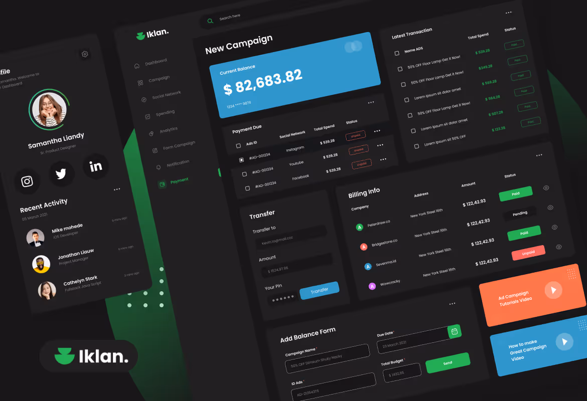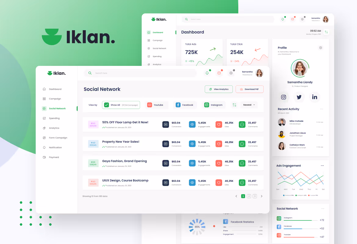 Wanna see how your ads campaign on your social media or other platform goes? Monitor all your ads campaigns by using Iklan, a simple and modern ads campaign dashboard template that suitable for ads managers, social media campaigns, social media ads, campaign managers, or any admin dashboard website.