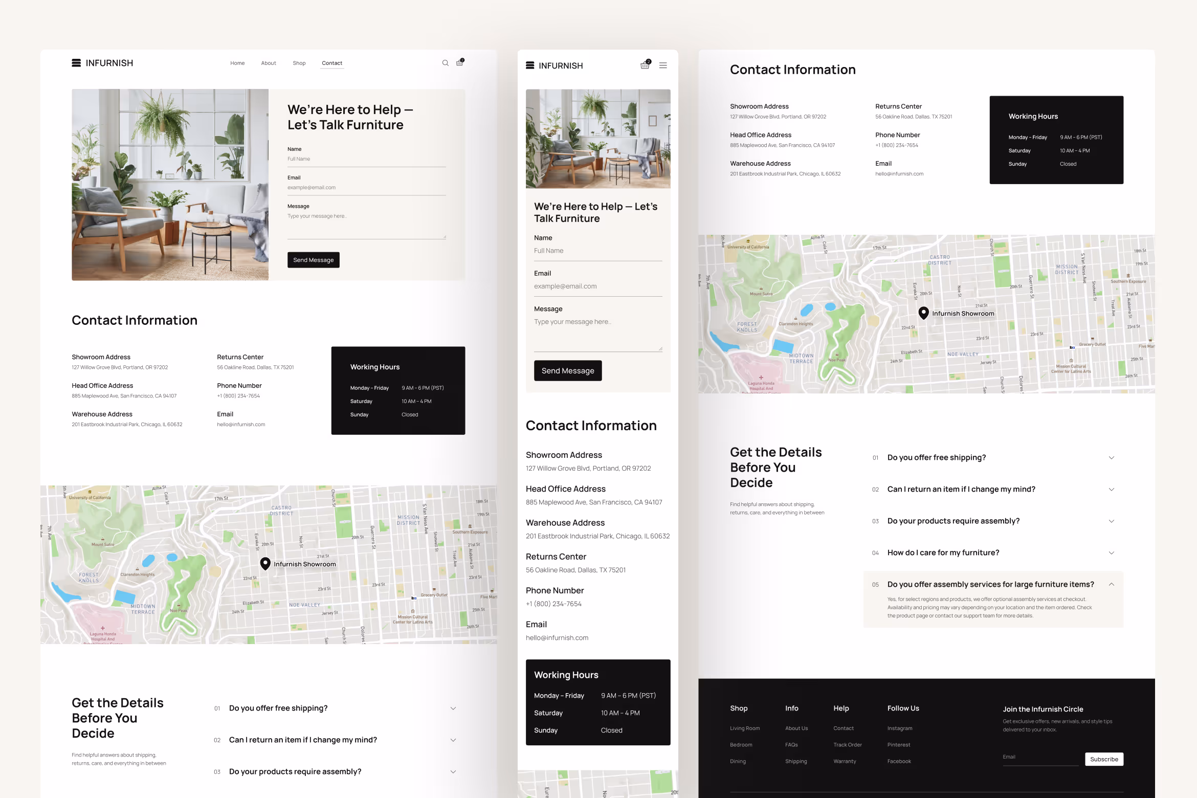 Elevate your online store with Infurnish, a sleek and modern website UI Figma template designed to help you present furniture collections with elegance and ease. Ideal for furniture e-commerce brands and lifestyle interior shops, this template comes with five meticulously crafted pages that create a seamless and visually engaging experience for your customers. Available in both desktop and mobile versions, this template ensures your brand looks exceptional on every device.