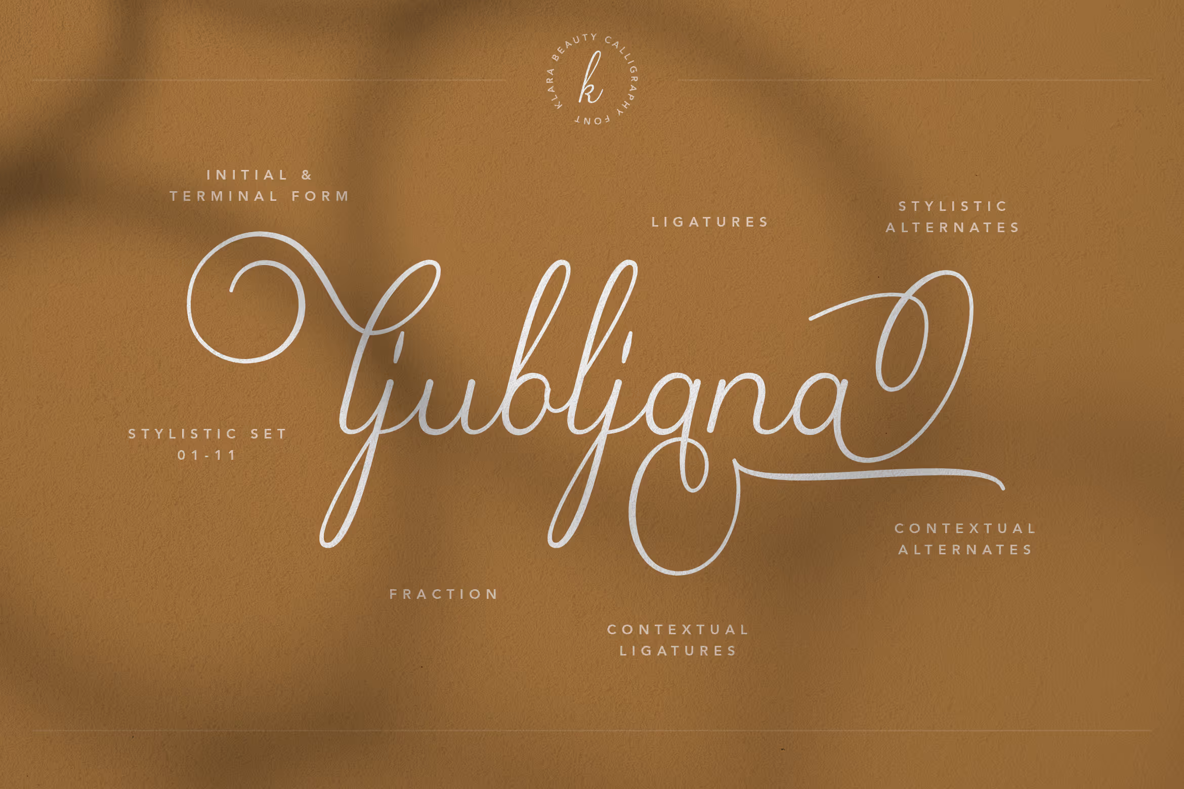 Klara includes a full set of beautiful hand-lettered uppercase and lowercase calligraphy font; supports OpenType features such as: kerning, initial form, terminal form, ligatures, fractures and many more. By using this font you can access all alternates included stylistic and contextual alternates.