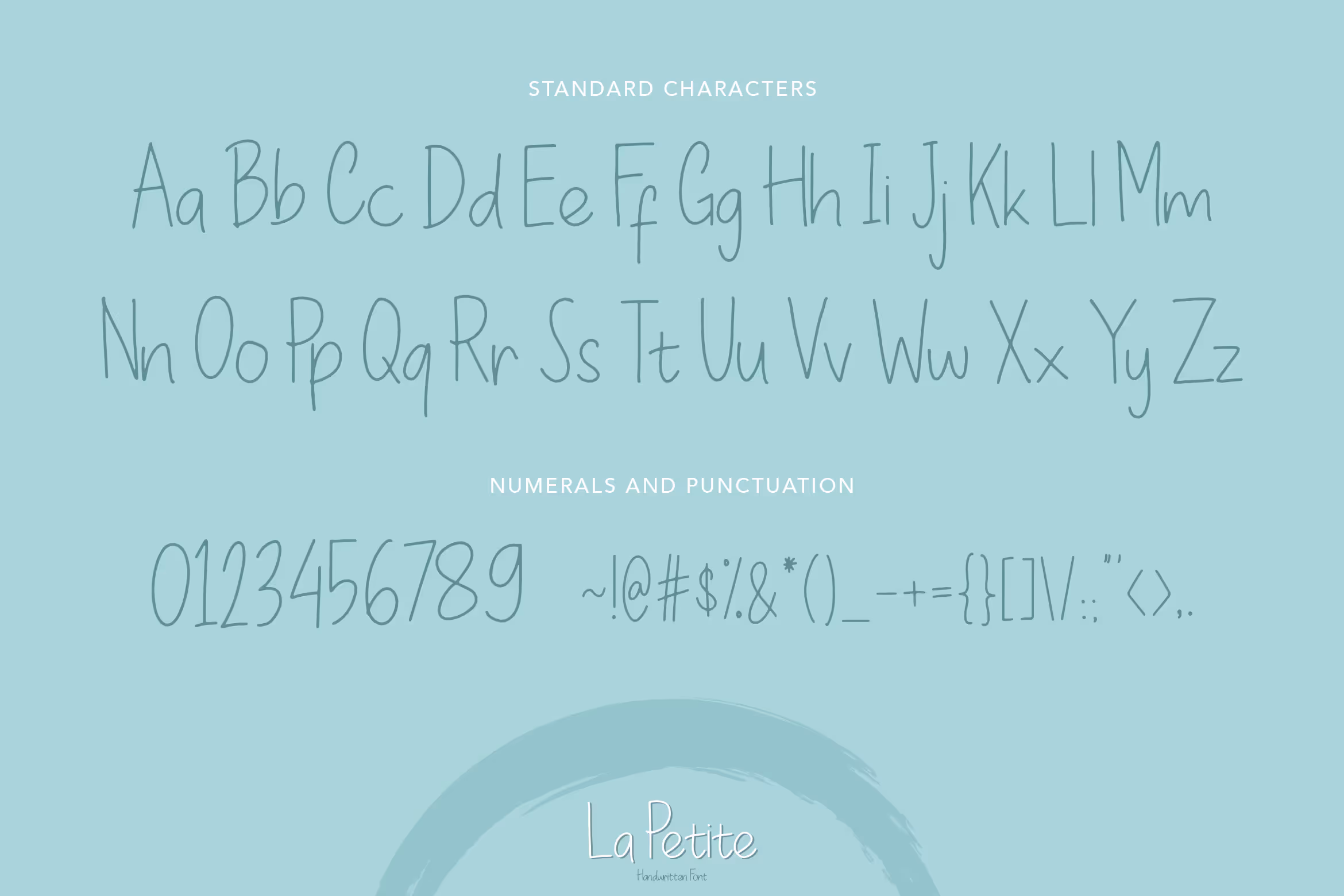 Every package of La Petite, the elegant handwritten font, contains fun, elegant and clean characters in uppercase and lowercase letters, a complete set of numbering and punctuation so this font can be used in any regular or professional term. La Petite only available in OTF format files only.