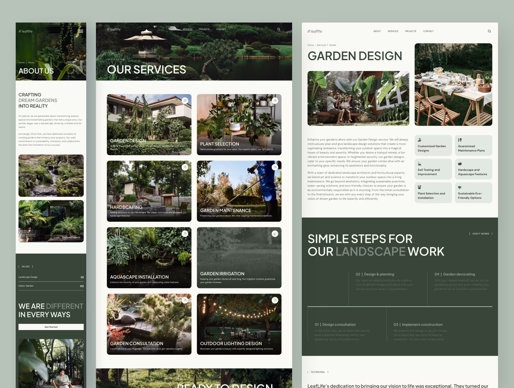 Provide a trustful and professional website for your clients using LeafLife, a modern and minimalist garden landscape design service website Framer template. It provides six complete designs for the main pages with a simple layout yet captivating and outstanding. Therefore, it will be easy for users to explore every section and page comfortably. Furthermore, the combination of greens makes this template more refreshing and suitable for garden landscaping or landscaping design business.