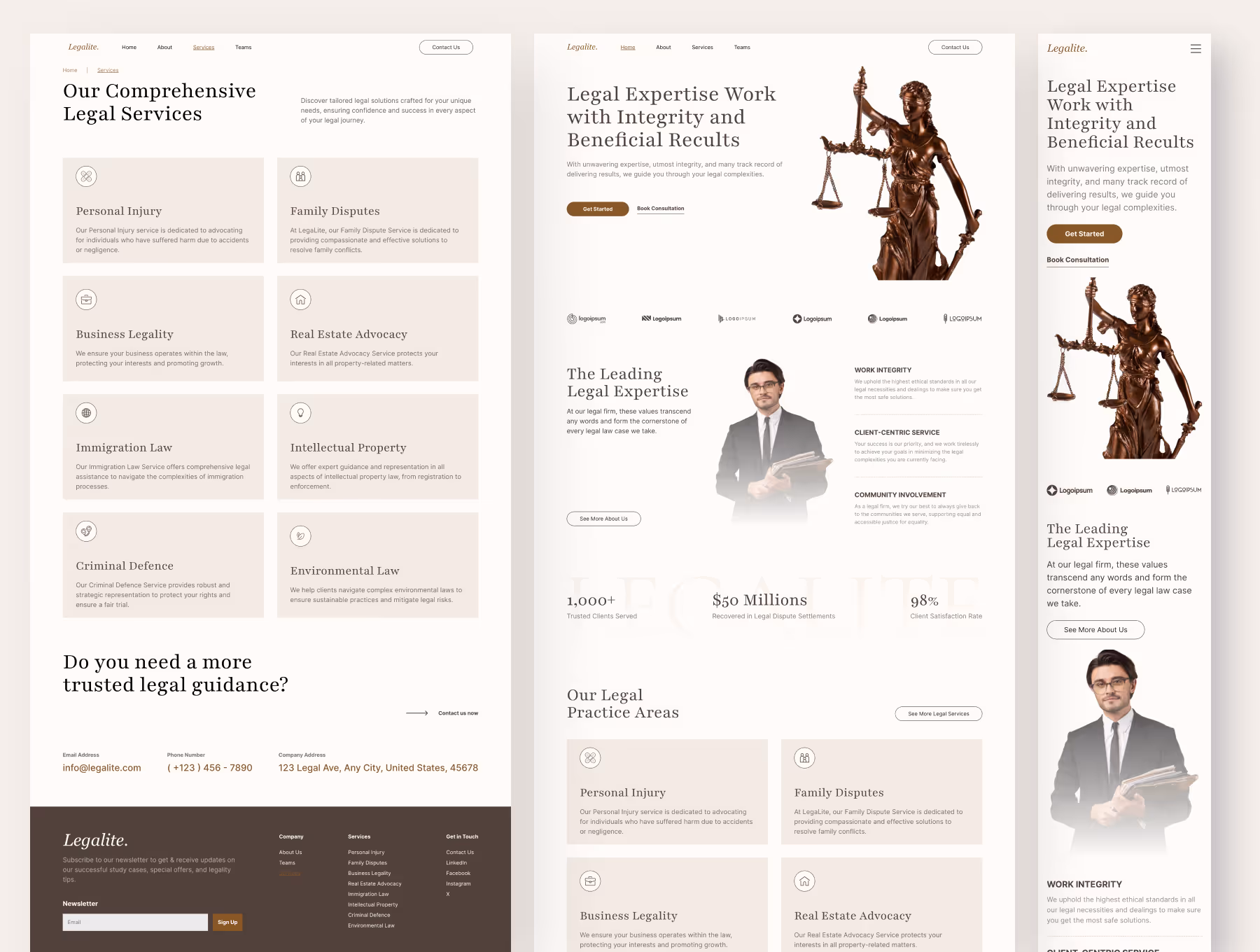 Gain the trust of your prospective clients with a professional-looking website using LegaLite, a simple modern law firm website Framer template. Its simple design makes this template look more professional. Brown bronze as the accent brings a friendly and warm vibe. Nevertheless, it still has its modern atmosphere that will be perfect for any legal or law firm with a strong vision. Serve your clients better from the moment they get in touch with your website using this template.