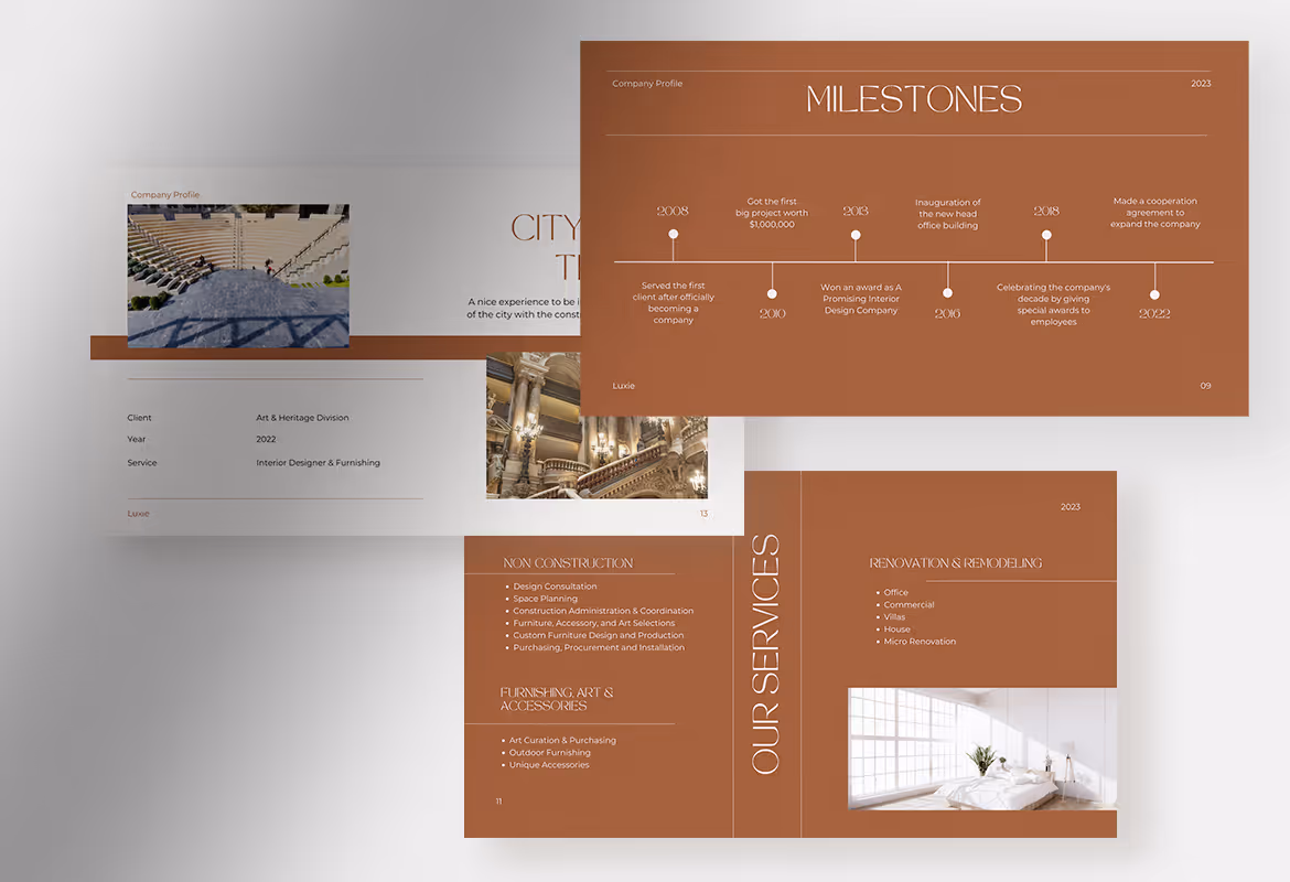 Some people think that choosing a template for a business proposal is not that important. What important is the content that will be delivered to the audience. Unfortunately, that assumption is a big mistake since a template also can affect people’s judgment of your proposal. To minimize failure, you have to make sure that you have composed the best content and used the best proposal template. You can use Luxie, the brown wood simple business proposal template, on your business proposal to make it even more eye-catching.