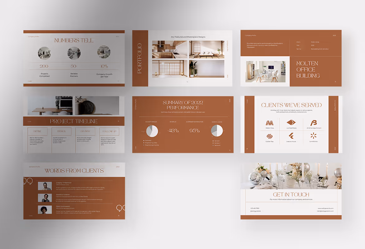 The brown-like solid wood on this template convinces that your company can handle any business offered. Not to mention the well-organized layout this template has can make your presentation clearer and neater. The better flow and easy-to-understand presentation will bring you success. You can’t find this masterpiece in any other marketplace so its uniqueness only can be found on our website. Make your business proposal be the most outstanding using this template.