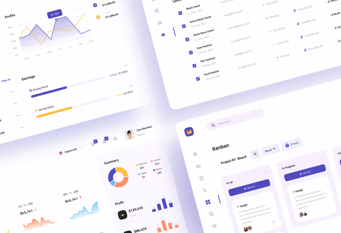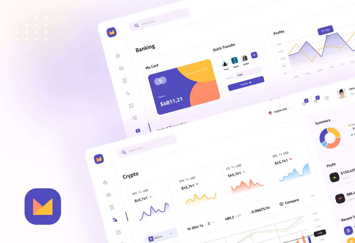 By providing 16 pages of the generic dashboard, email dashboard, contact dashboard, crypto dashboard, Kanban dashboard, invoicing dashboard, and ticketing admin dashboard, Mandal will help you finish your job in a blink of an eye. Complementing with colorful and various graphics and charts, it will be easier to monitor the progress of your cryptocurrency or your project online and in real-time.