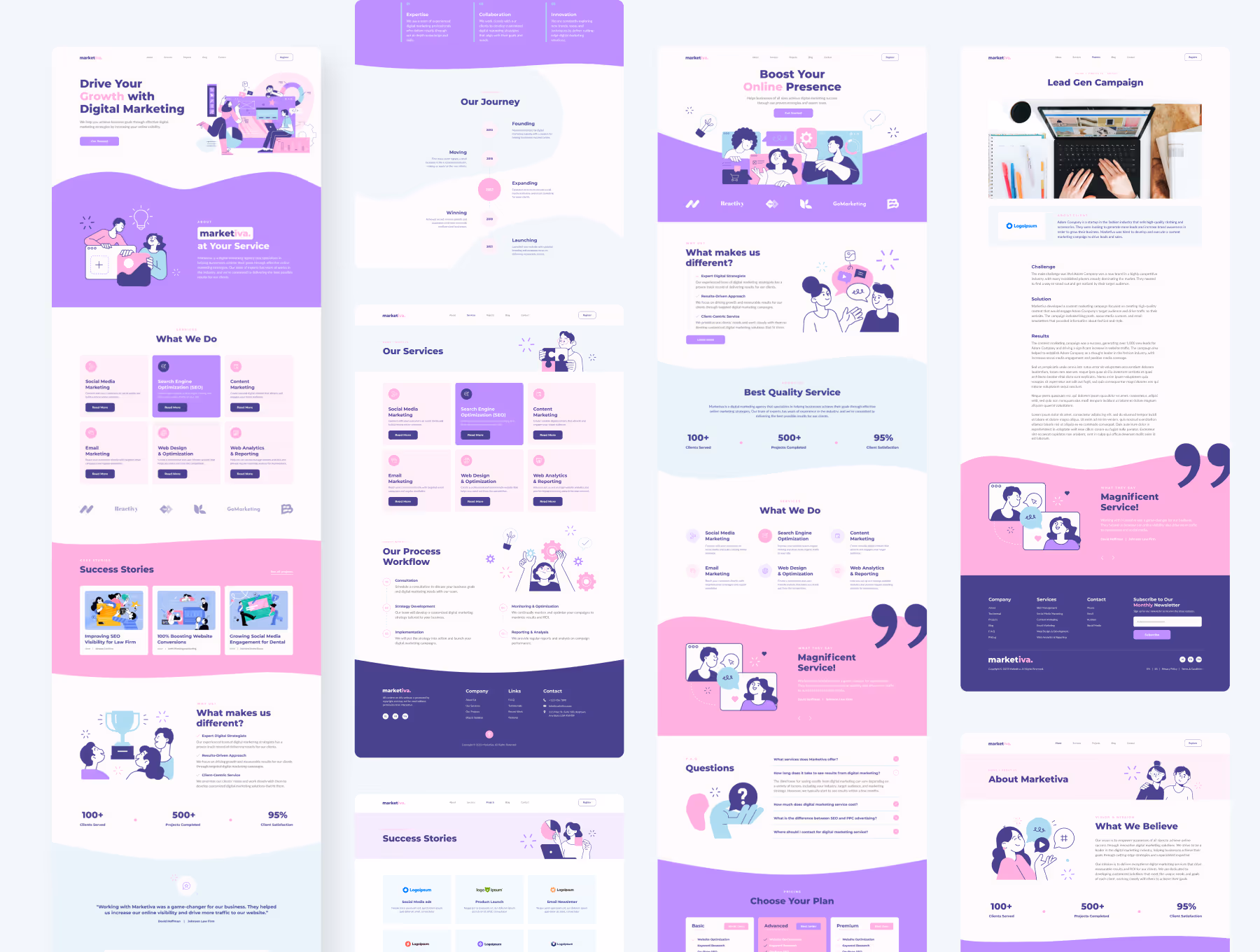 Many businesses are increasingly aware of the need for assistance from marketing agencies to be competitive, especially with so many new businesses popping up. It can be an opportunity and a challenge for a marketing agency like yours. You can cultivate their trust in your agency, starting by polishing your company website. Marketiva, a digital marketing agency website template, is what you need to make people entrust their businesses to your hands.