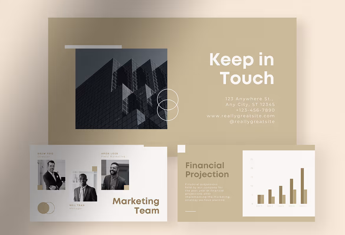 The combination of light khaki and white in this template gives a soothing and calm atmosphere. With the well-organized layout, you can easily organize all the marketing information you need to share with the audience, such as company analysis, challenges in the market, marketing strategy overview and more. This neat template also will help you deliver the information well and the audience can focus on your explanation. Make your marketing strategy presentation a success using this template.