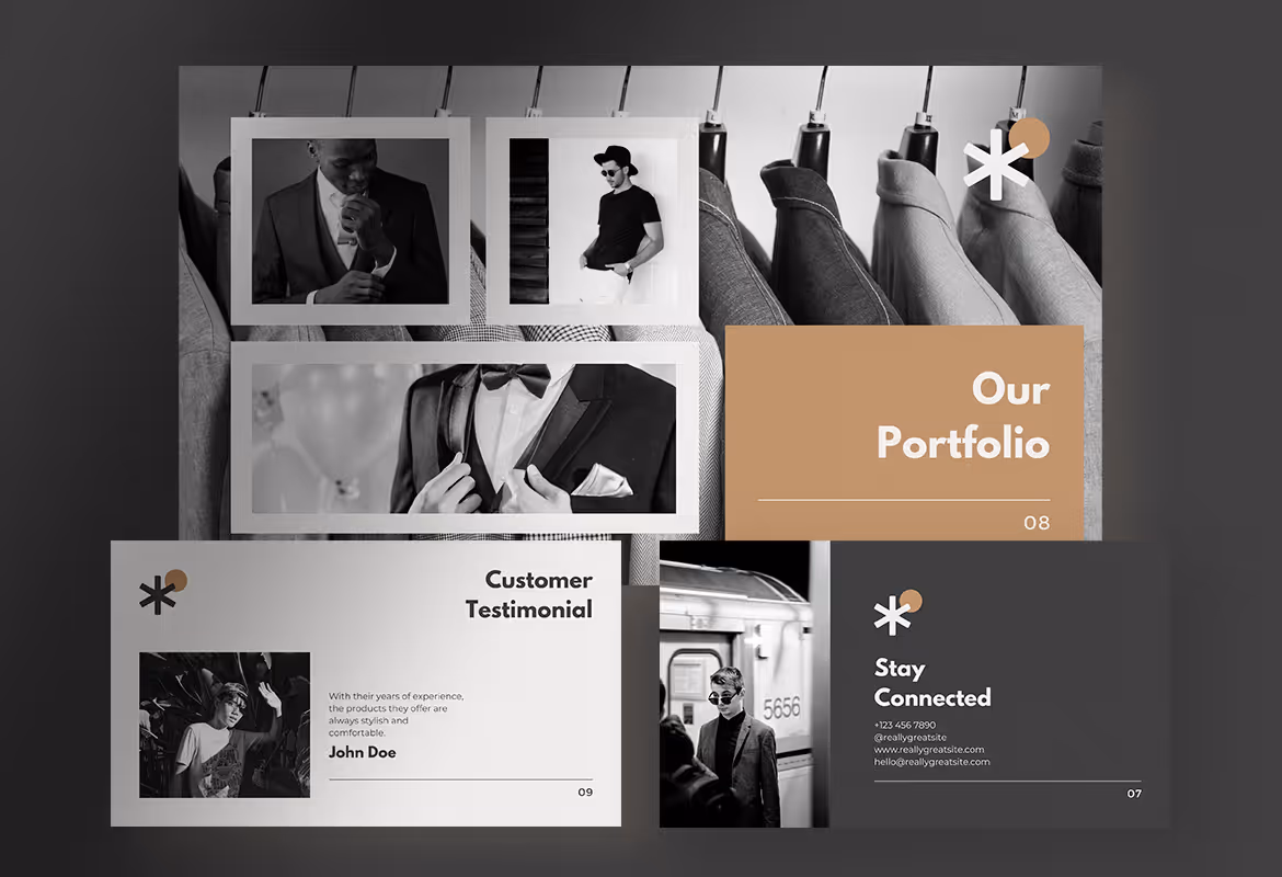 The minimalist design is a strong point of this template but it can give a professional impression to your company profile. The well-organized layout in this template also helps you present a neat and clean presentation that everything is in its place. You can introduce your services and products, history and journey, also contact information to reach you offline or online. Although simple, this template is a complete package that can convey all necessary information to your audience.