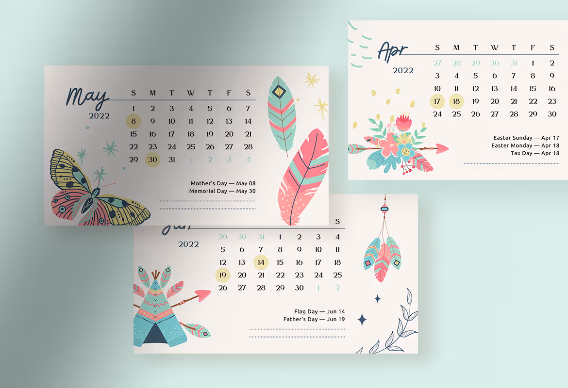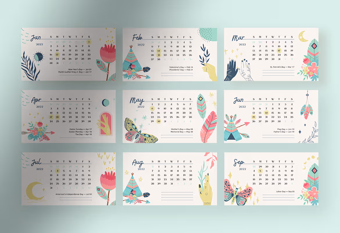 Having an eye-catching calendar on your desk or computer desktop can improve your daily mood. That’s why even if you already have a built-in calendar on your phone or computer, having a separate calendar is still fun. With the customized calendar, you can organize or mark the important date based on your need. To make your calendar more attractive, use this Nature Festival Pastel Boho Celestial Calendar 2022 Template for this coming year. You can use it for your personal calendar or planner, or send it as a gift, whether in a digital or print version.